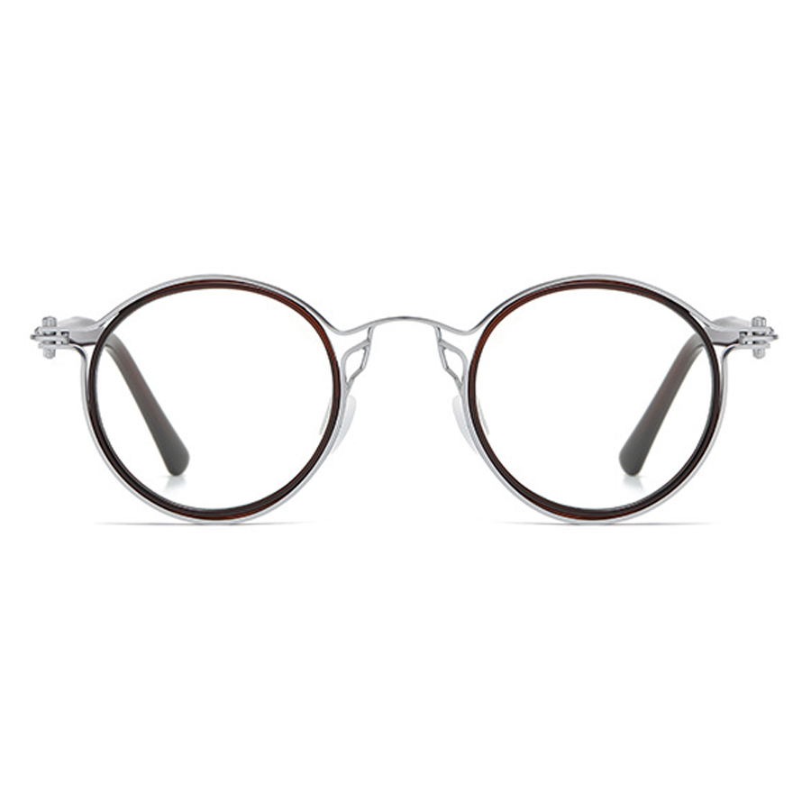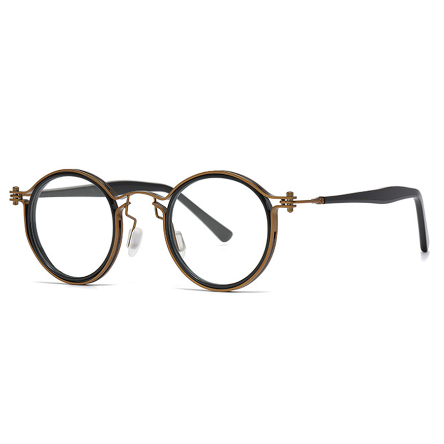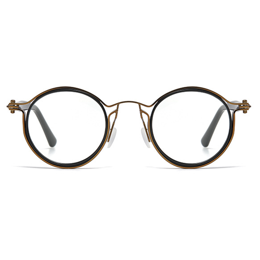 When it comes to color and design, these eyeglasses offer a wide range of options. The frame colors include metallic tones such as gold, silver, gunmetal (gray), and bronze, along with unique dual – rim combinations like gold outer rim + black inner rim or silver outer rim + brown inner rim. The temple colors contrast with black, gray, or brown, providing a polished look. The decorative elements are truly eye – catching, with ornate, screw – like details on the hinges, a minimal and sleek metal bridge, and some models having small rectangular cutouts or patterned inner rims.