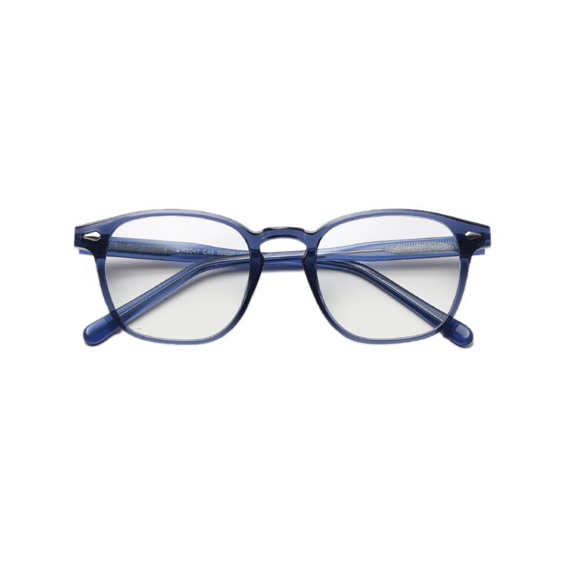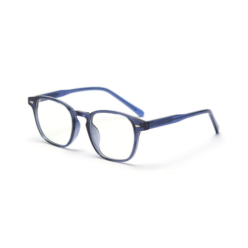 The frames come in a variety of colors including Blue, Bright Black, Gray, Tortoise, White, and Yellow. The tortoise pattern brings a vintage and bold look, while the solid colors like black and blue offer a minimalist and versatile style. The rectangular frames with rounded edges present a modern yet timeless aesthetic. The simple, narrow bridge or the subtle cutout/“notch” adds a retro touch, and the smooth, ergonomic temples feature subtle metallic or textured detailing for both decoration and structural reinforcement.