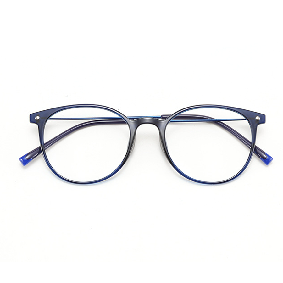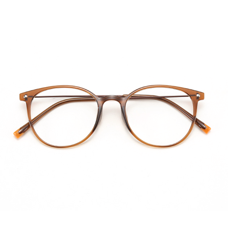 The round lens shape with slightly curved top edges, influenced by the subtle cat – eye design, gives a trendy look that complements both casual and semi – formal outfits. Small metal rivets on the upper frame corners not only serve a decorative purpose but also secure the frame. The two – tone temple tips provide a striking contrast, and the thin, curved nose pads on select models ensure a comfortable and stable fit.