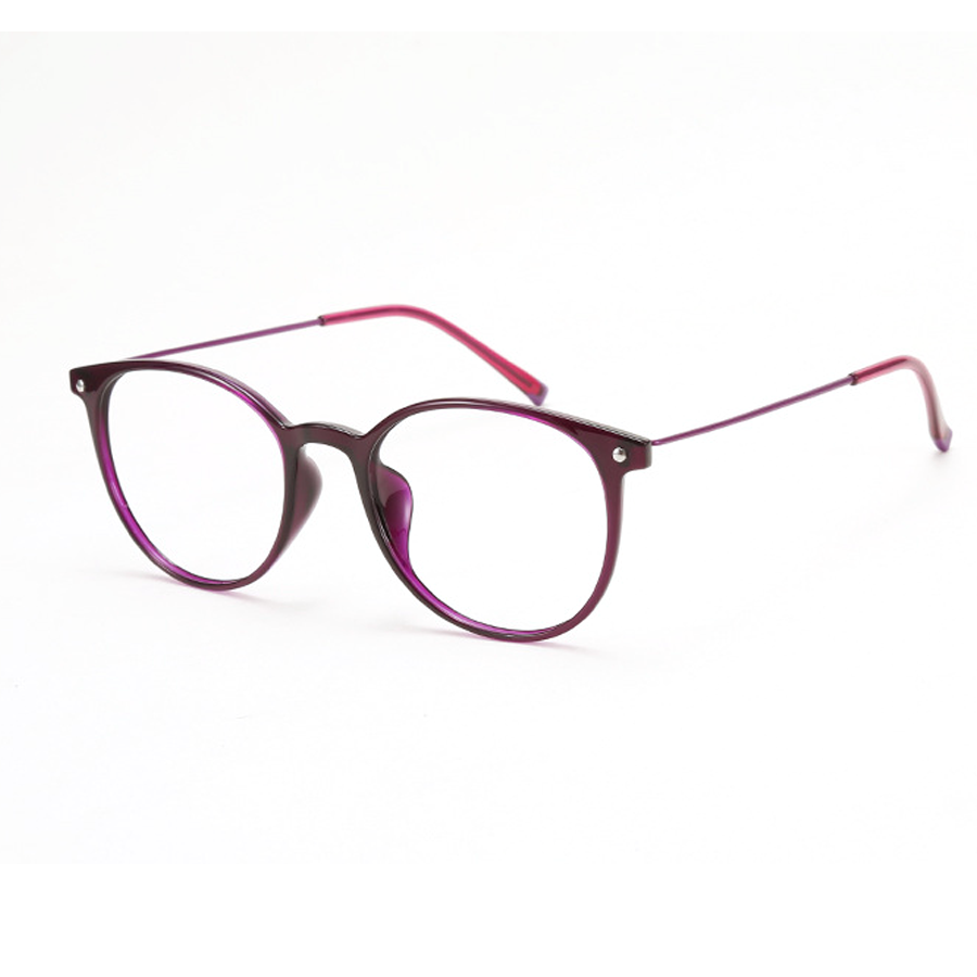 The frame front is crafted from a durable, lightweight plastic with a smooth, glossy finish, while the temples are a combination of thin metal for support and flexible plastic for comfort, featuring colored accents. Available in a variety of captivating colorways including Bright Black, Brown, Dark Blue, Matte Black, Purple, and Red, some even with gradient finishes like purple – to – black and red – to – black, adding a unique visual appeal.