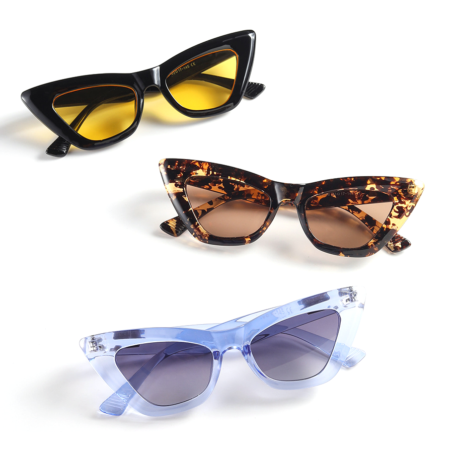 The frames are crafted from lightweight, durable acetate, ensuring comfort during extended wear. With a smooth finish and a glossy sheen, these frames manage to retain sharp, angular shapes, a testament to their high – quality construction. The lenses are tinted, likely made of polycarbonate or glass, and offer UV protection, reducing glare and safeguarding your eyes from the sun’s harsh rays. The tinted lenses come in various options like solid colors (gray, brown, green, yellow), gradient lenses, and some with reflective surfaces, providing you with versatility for different lighting conditions and style preferences.