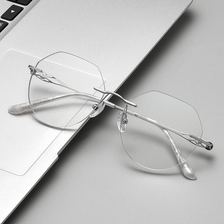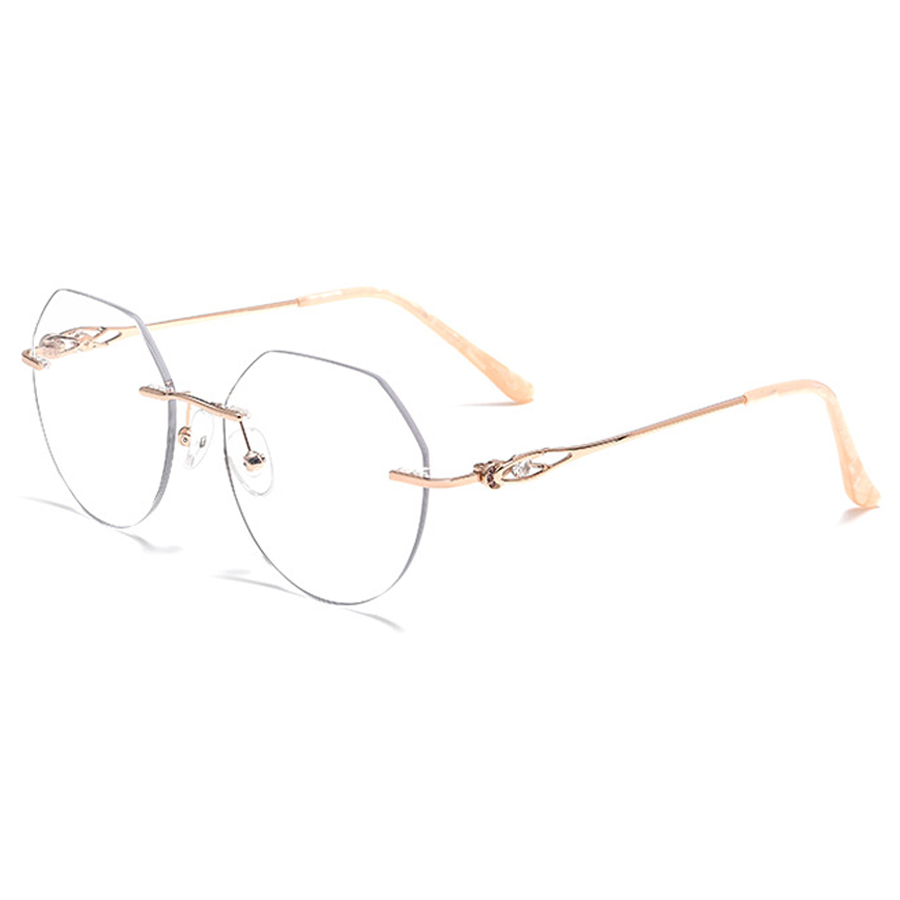 Enhance your vision and style with these elegant rimless geometric eyeglasses. The lightweight design ensures all – day comfort, while the minimalist look offers a fashionable and contemporary appeal.