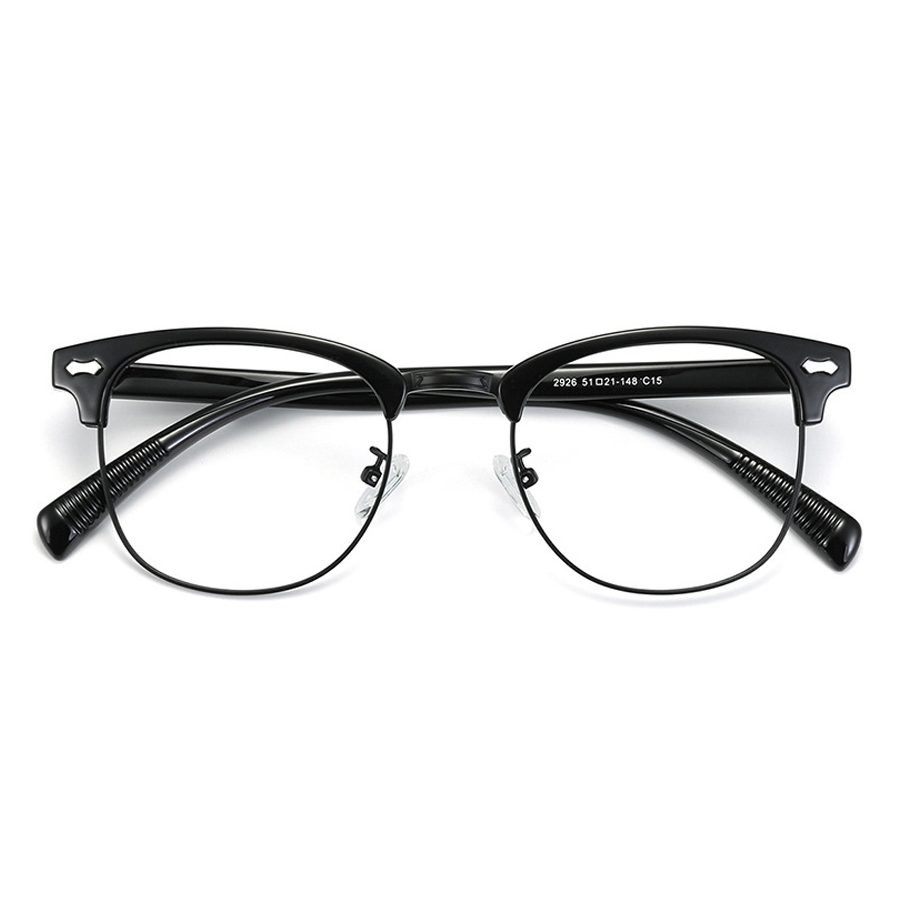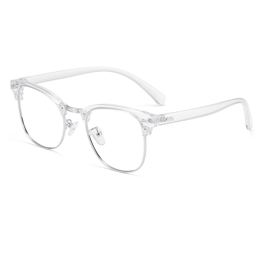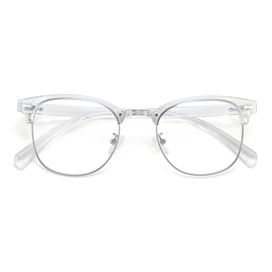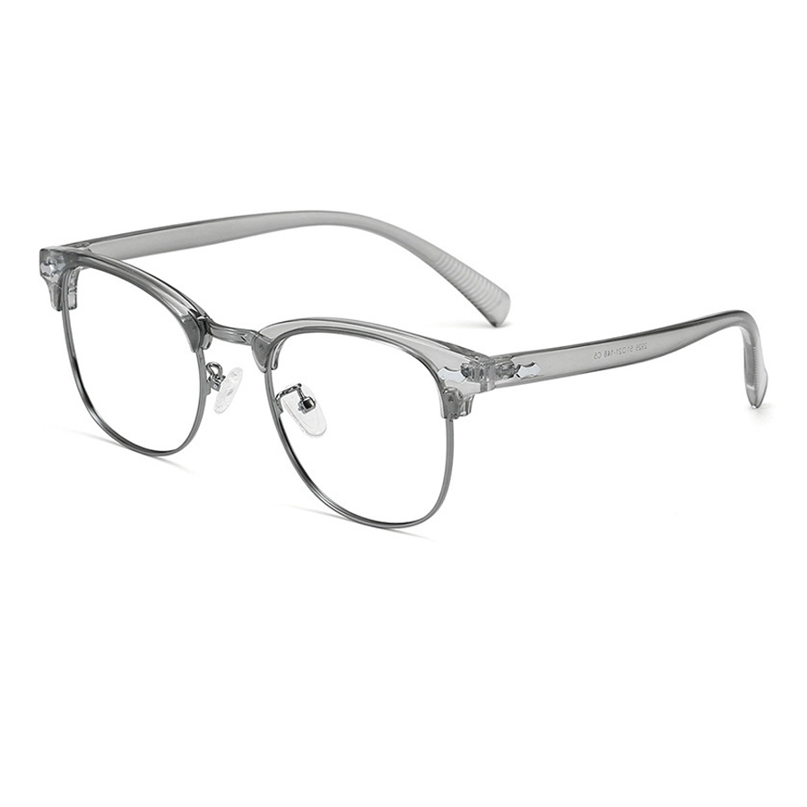 The frame front’s top bar is crafted from thick, durable plastic (acetate or similar), providing rigidity and a touch of style. The lens rims are made of a lightweight metallic alloy, such as stainless steel or titanium, which not only offers strength but also reduces the overall weight of the glasses for extended wear. The temple arms are a combination of plastic for structure and a textured rubber/plastic coating for a better grip and enhanced comfort. The clear plastic or silicone nose pads are soft, skin – friendly, and adjustable, ensuring pressure – free support.