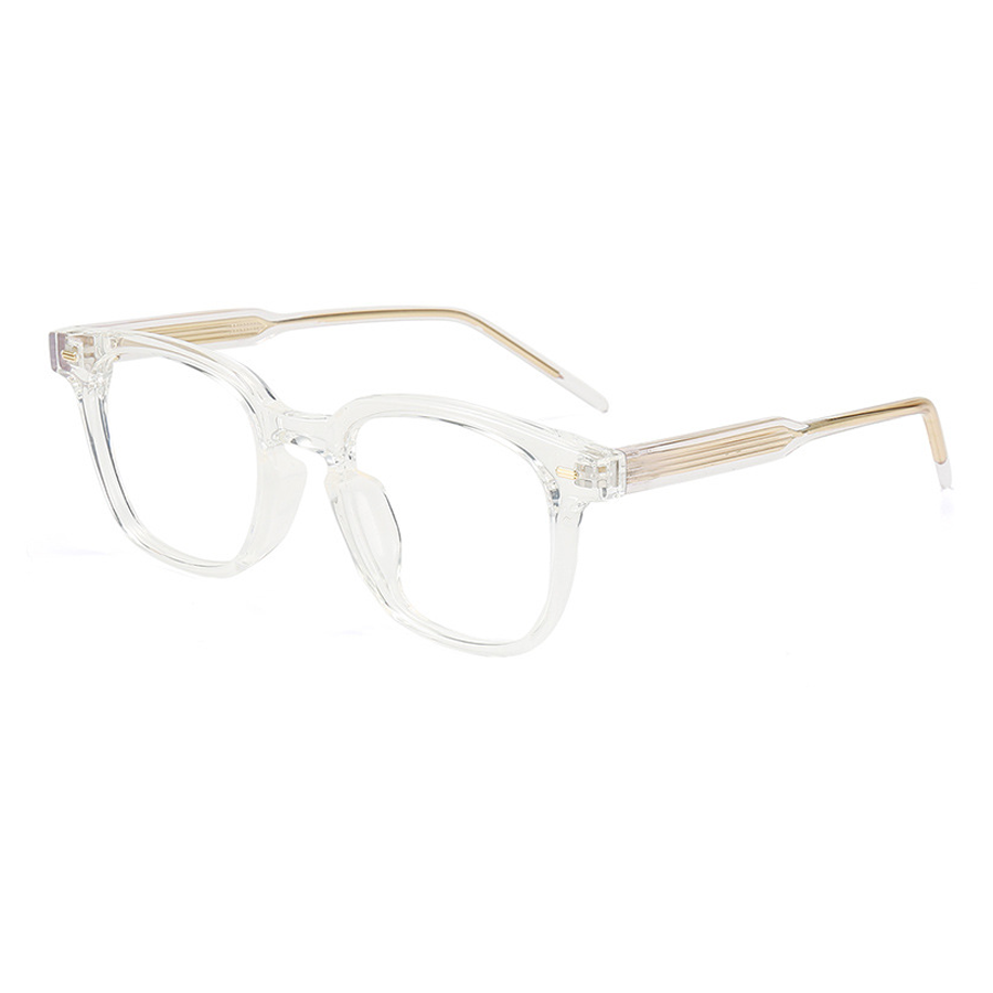 Constructed primarily from acetate or lightweight plastic, the frames offer a durable yet comfortable experience. The temple arms combine this plastic/acetate material with metallic accents in gold, silver, or chrome, adding both structural support and an aesthetic contrast. The clear lenses are prescription-ready and may also have anti – glare or blue – light blocking capabilities, allowing for customization to suit your needs.