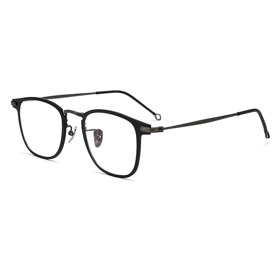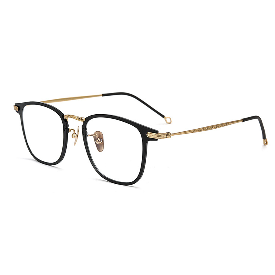The primary color options of these eyeglasses include Black, Black Gold, Black Gun, and Gun, providing a variety of stylish choices. Some frames feature gold accents, adding a touch of luxury, while others come in more understated dark tones like gunmetal gray. The rectangular or slightly rounded rectangular shape is a classic silhouette with modern edges, suitable for various face shapes.