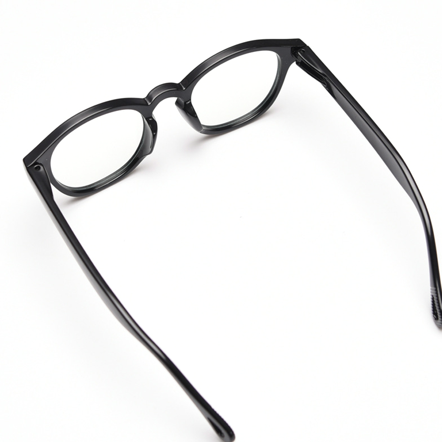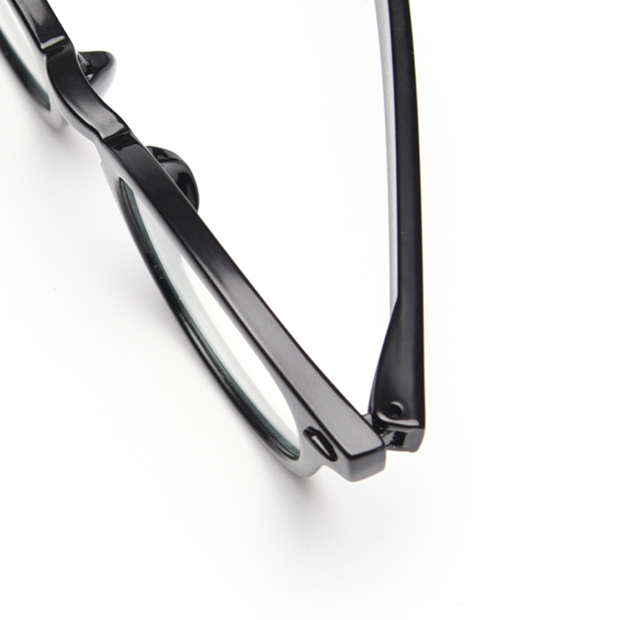 The frames are crafted from lightweight plastic, likely acetate or TR90, which gives them a smooth, glossy finish. They are not only flexible and durable but also have a sleek, polished appearance. The temples feature a small loop at the end for easy hanging or adjusting the fit.