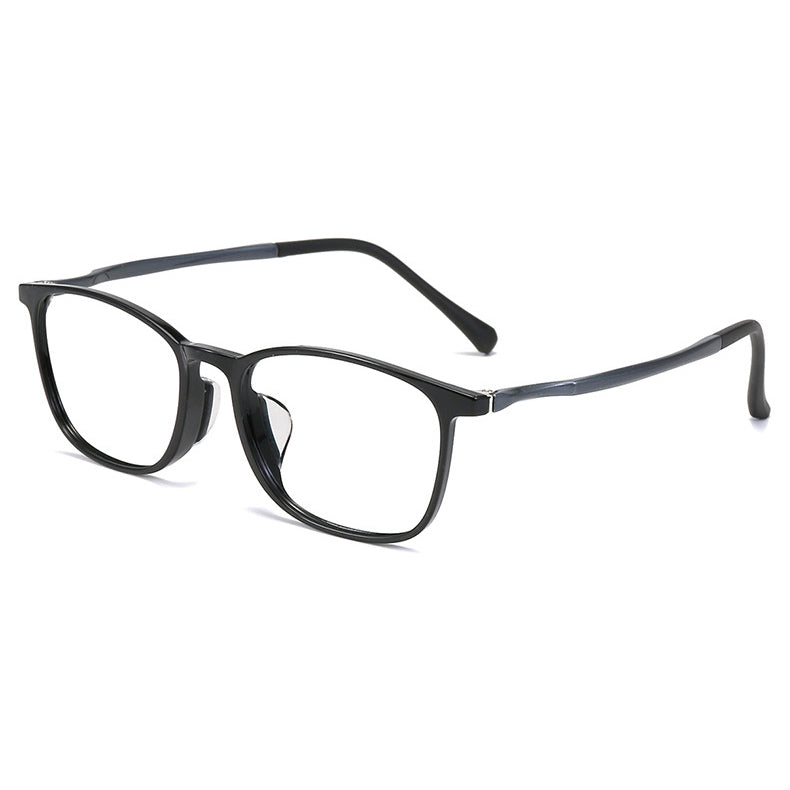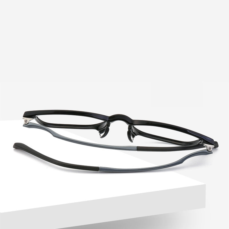 The frames are crafted from a combination of materials, ensuring durability and comfort. The primary frame material is likely TR90 or acetate plastic, which is lightweight, flexible, and scratch-resistant, reducing pressure on the nose and ears during extended wear. The temples are a mix of metal/alloy for structural support and soft, rubberized plastic for the ear tips, providing an anti-slip grip. The metal hinges at the connection of the frame and temple are not only durable but also allow for smooth folding for easy storage.