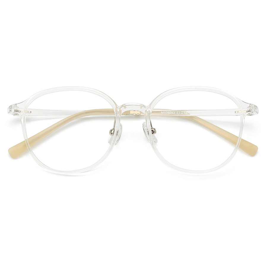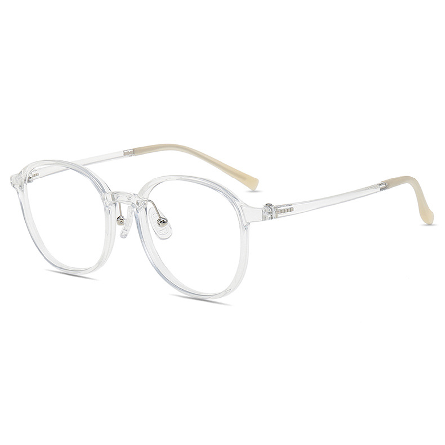 The frame is primarily crafted from lightweight, flexible plastic, likely TR90 or a similar thermoplastic, offering durability and a smooth, gradient – transparent finish. Metallic accents on hinges and nose pads add structural strength. The lenses are clear, either plastic or glass, and are ideal for prescription use or clear vision. The arms are a combination of plastic for flexibility and metal for hinges, with soft, rubberized tips ensuring comfort and a non – slip fit.