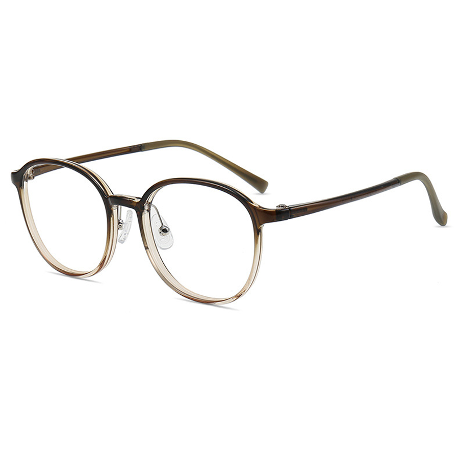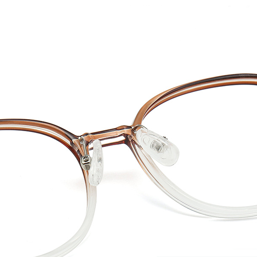 Available in a variety of trendy colors including Bright Black, Brown, Dark Green, Gray, Light Brown, and Transparent, there’s a shade to match every style preference. The round, smooth silhouette with curved edges is a classic and versatile shape, enhanced by gradient color transitions that add a trendy and refined look. Clear silicone nose pads provide comfort and hygiene while preventing slipping and minimizing skin irritation.