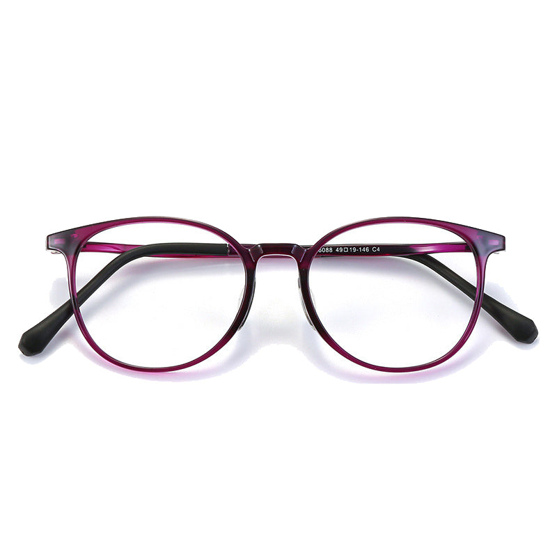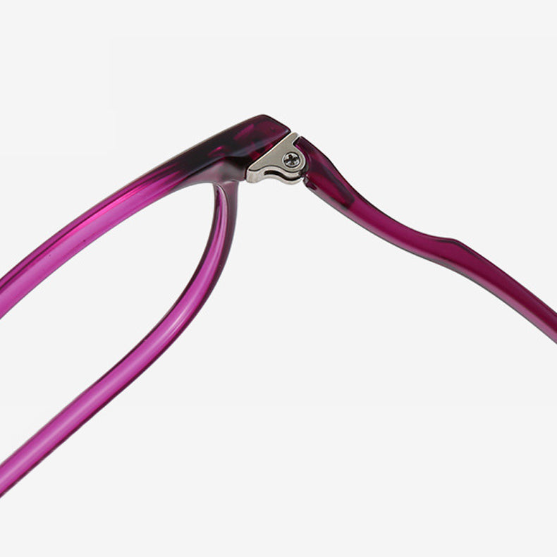 The frames are primarily crafted from lightweight and durable plastic, likely TR90 or acetate. This material offers comfort and flexibility, reducing pressure on the nose and ears for all – day wear. The frames come in a variety of finishes, such as glossy or semi – transparent for a trendy look, like the purple gradient frames.