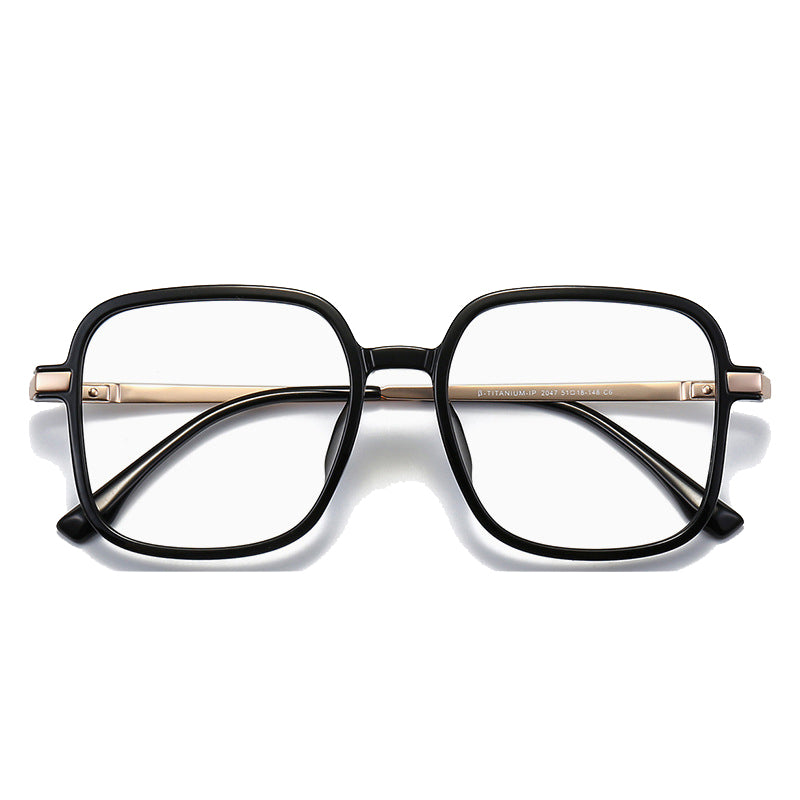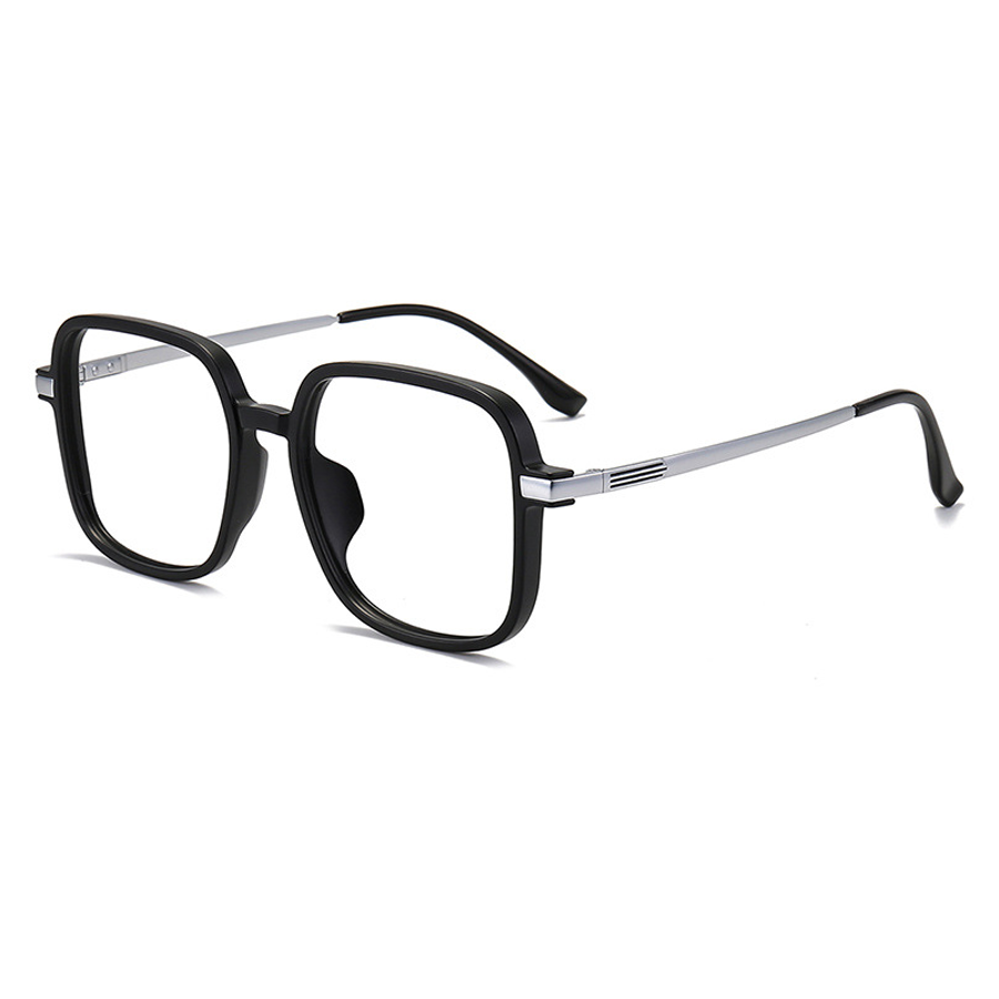 The front lens rims are crafted from a lightweight, durable plastic (likely acetate or TR90), available in a range of colors including Black Gold, Black Silver, Gray, and White. These materials offer a sleek, smooth appearance and excellent resistance to breakage. The temples are made of β-titanium, a lightweight, hypoallergenic alloy known for its strength and comfort. Some temples also feature metallic plating in silver, gray, gold, or rose gold for added aesthetic appeal and durability. The hinges and screws are metal (likely stainless steel or titanium), ensuring structural integrity and smooth movement.