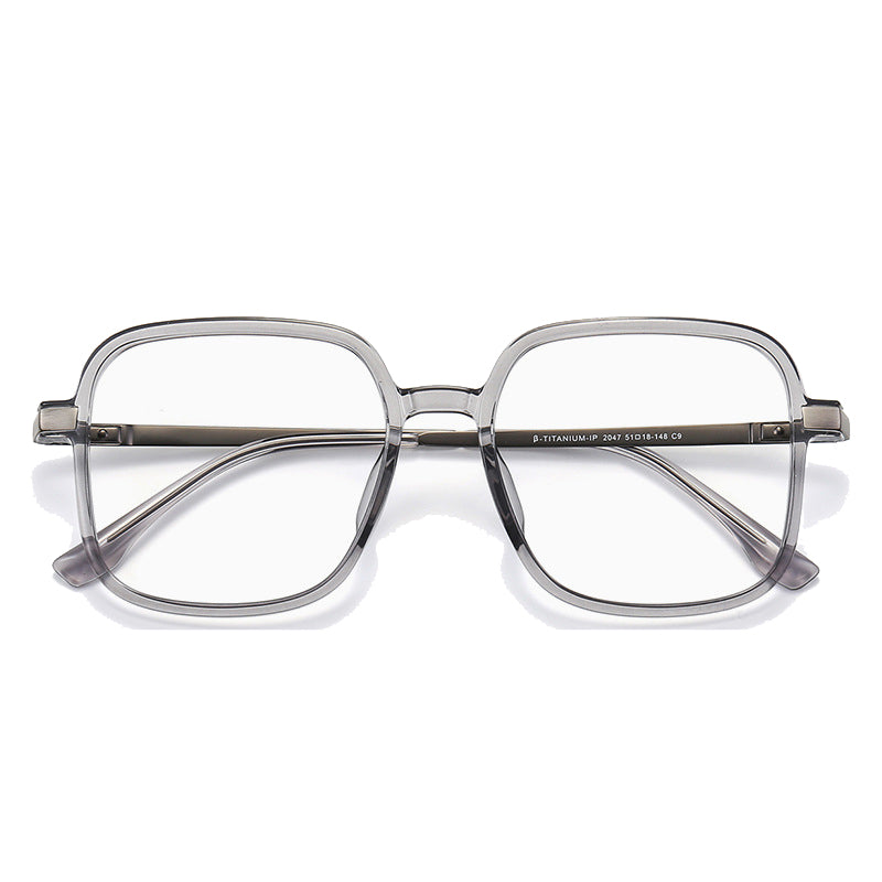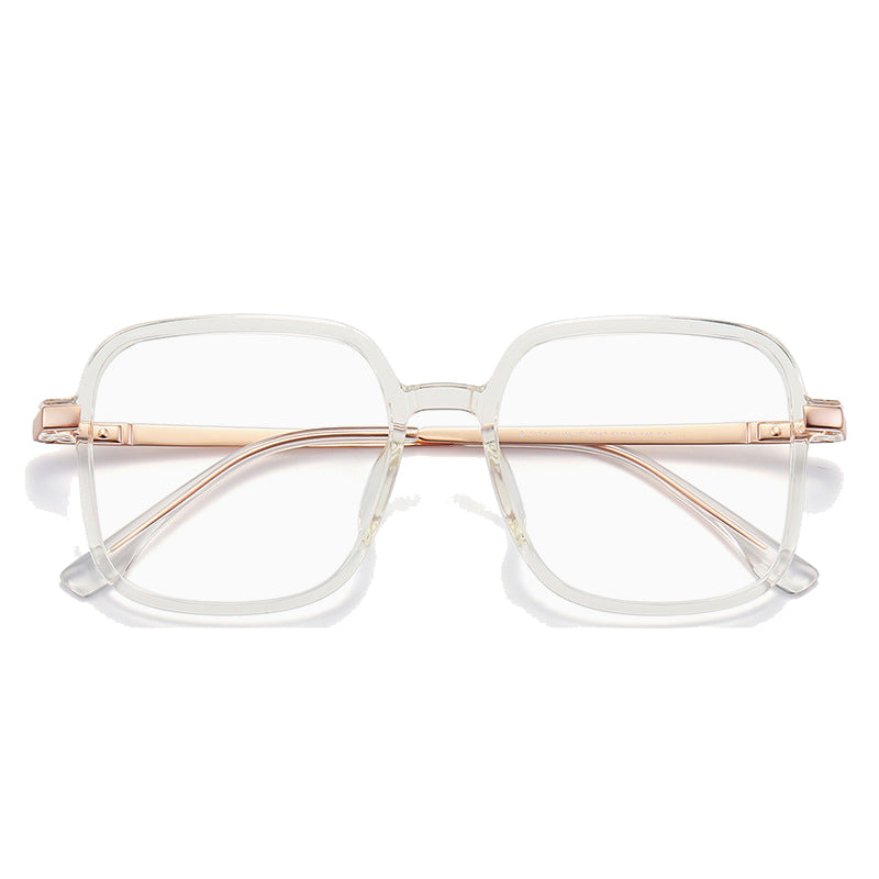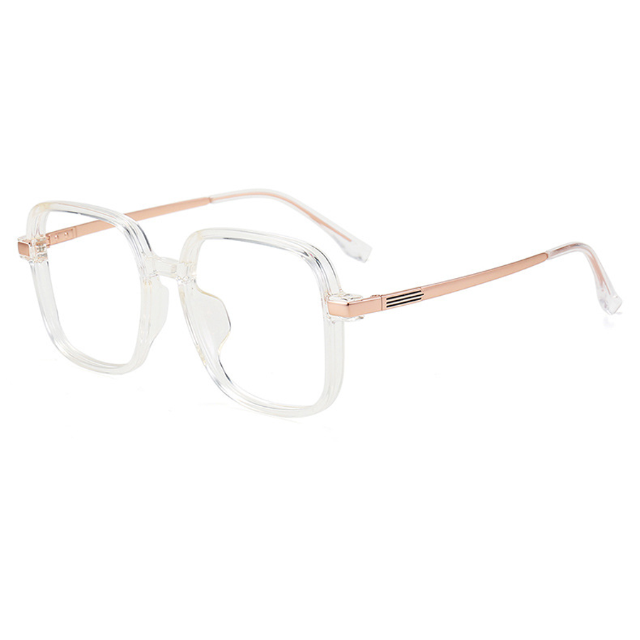 The clear lenses are implied (transparent) and are suitable for vision correction or blue – light blocking. The smooth, polished metal accents and minimalist plastic frames create a high – end, understated look. The craftsmanship is top – notch, with even frame edges, precise hinge alignment, and uniform plating. The plastic frames resist scratches and warping, and the β – titanium temples are corrosion – resistant and flexible. There are no visible imperfections, indicating high production standards.