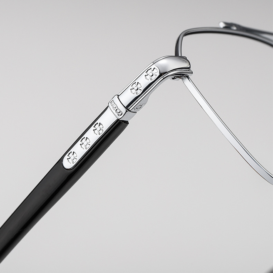 The construction of these eyeglasses is top – notch, with well – defined joints between the frame and temples, secured by screws or rivets. The polished metal surfaces and smooth, scratch – resistant plastic temples show attention to detail and durability.