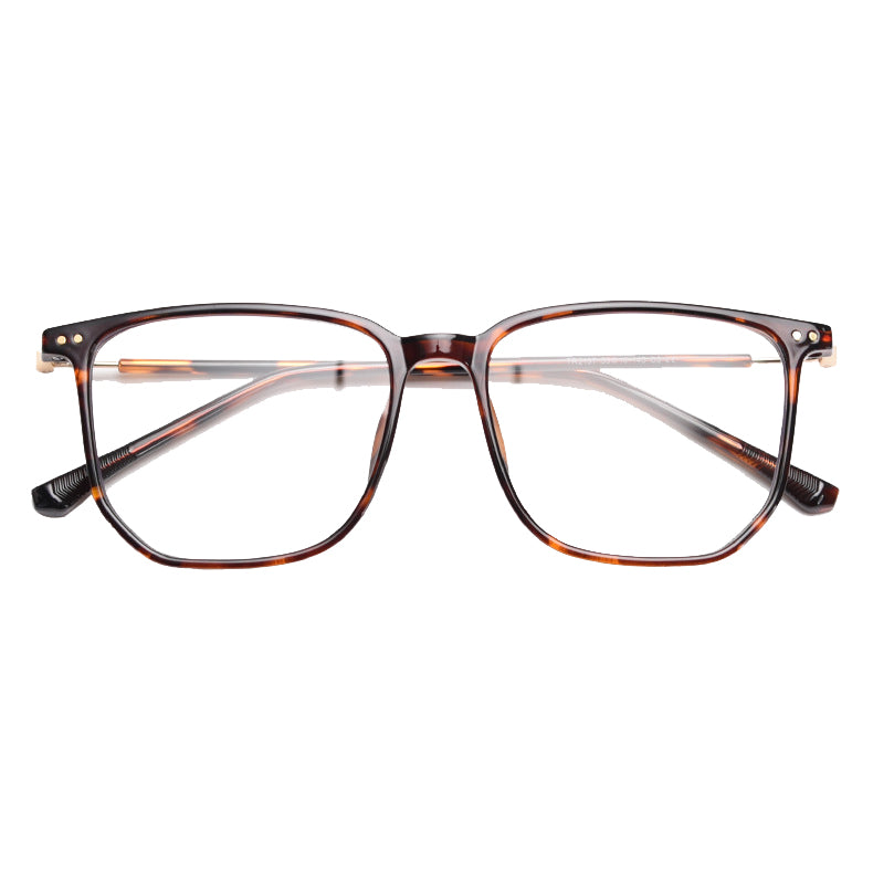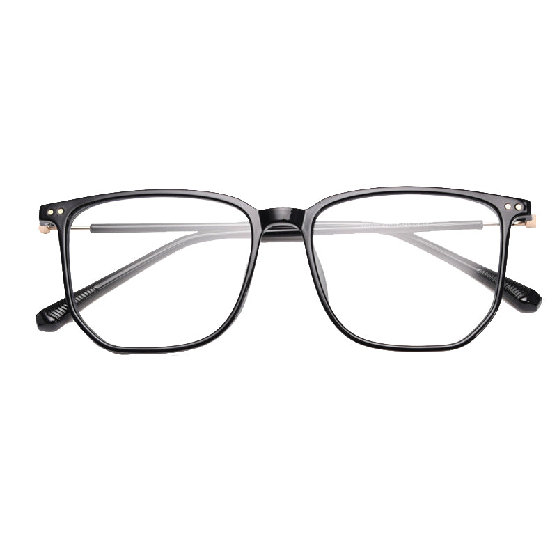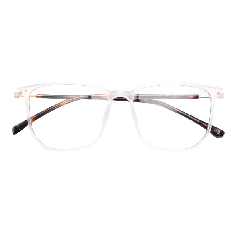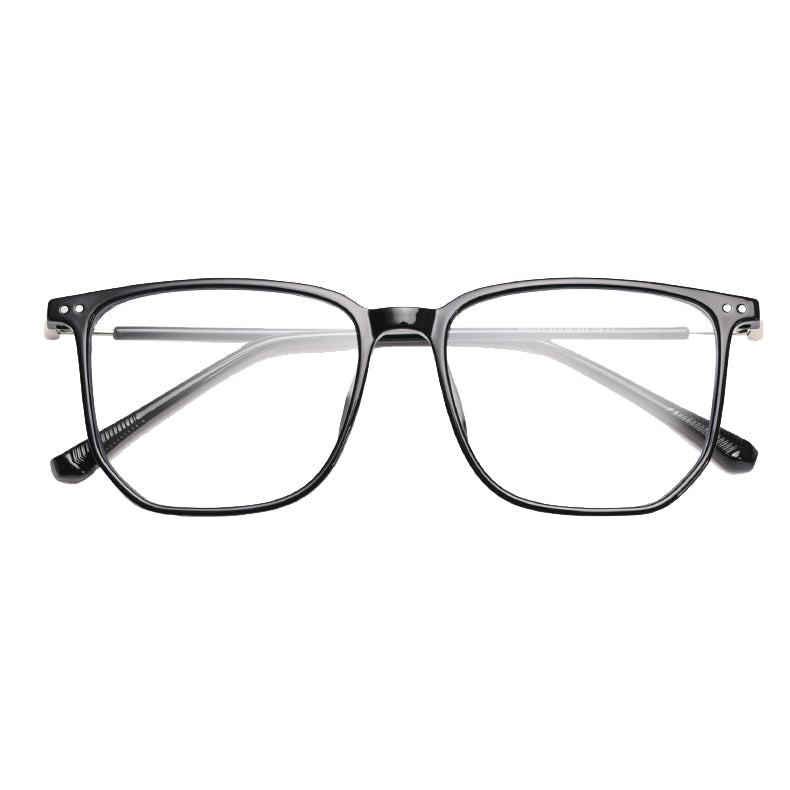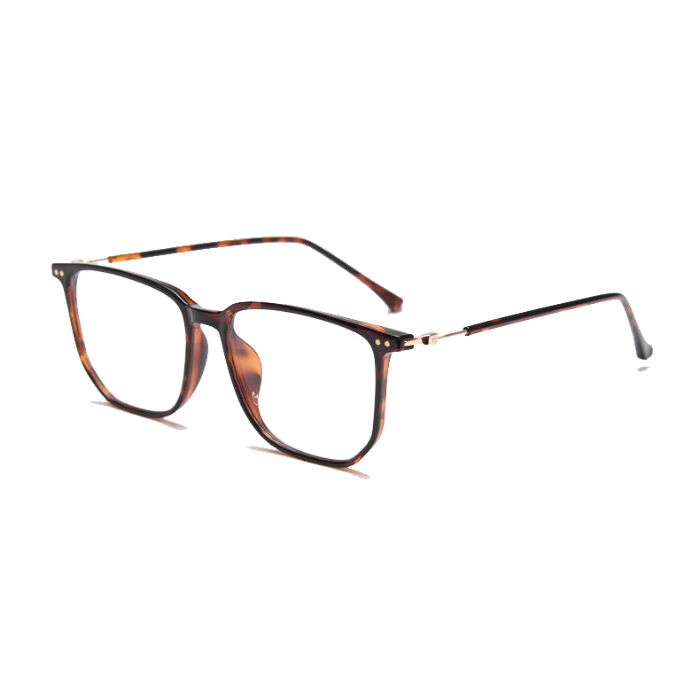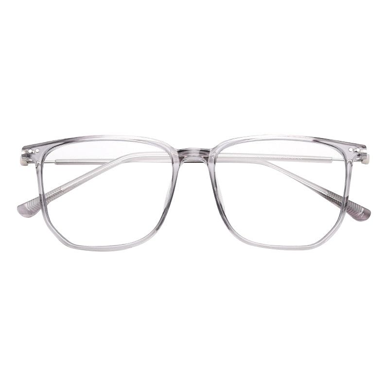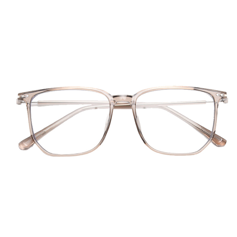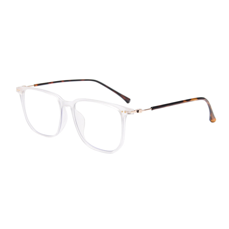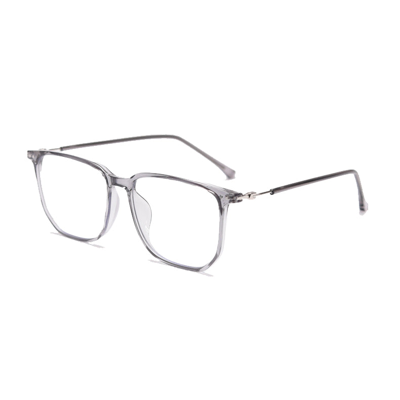The front of these eyeglasses, the lens housing, is crafted from lightweight and durable plastic, likely TR90, acetate, or nylon. This material not only gives the frames a smooth, translucent/opaque finish but also ensures a lightweight construction, making them ideal for extended wear. The temples, or arms, feature metal components such as stainless steel or alloy with a polished finish, providing both structural support and flexibility. The tips of the temples are made of rubber or soft plastic for added comfort and a non – slip grip. The hinges and connectors are metallic, probably nickel – plated or stainless steel, guaranteeing smooth movement and long – term durability.