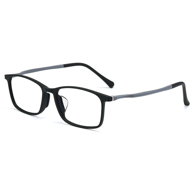 Available in a variety of color combinations, including Black, Black Blue, Black Grey, Black Purple, and Black Red, you can choose the one that best suits your personal style. The primary frame color is dominantly black, with contrasting colors on the temples adding a touch of visual interest. The rectangular frame shape has rounded edges (a soft square), making it a versatile design that suits most face shapes.