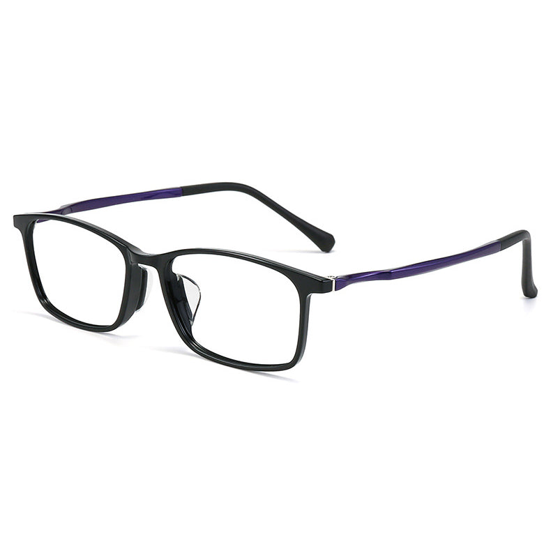 Available in a variety of color combinations, including Black, Black Blue, Black Grey, Black Purple, and Black Red, you can choose the one that best suits your personal style. The primary frame color is dominantly black, with contrasting colors on the temples adding a touch of visual interest. The rectangular frame shape has rounded edges (a soft square), making it a versatile design that suits most face shapes.