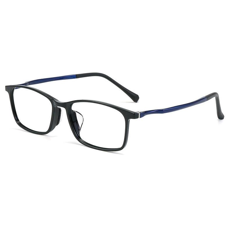 Available in a variety of color combinations, including Black, Black Blue, Black Grey, Black Purple, and Black Red, you can choose the one that best suits your personal style. The primary frame color is dominantly black, with contrasting colors on the temples adding a touch of visual interest. The rectangular frame shape has rounded edges (a soft square), making it a versatile design that suits most face shapes.