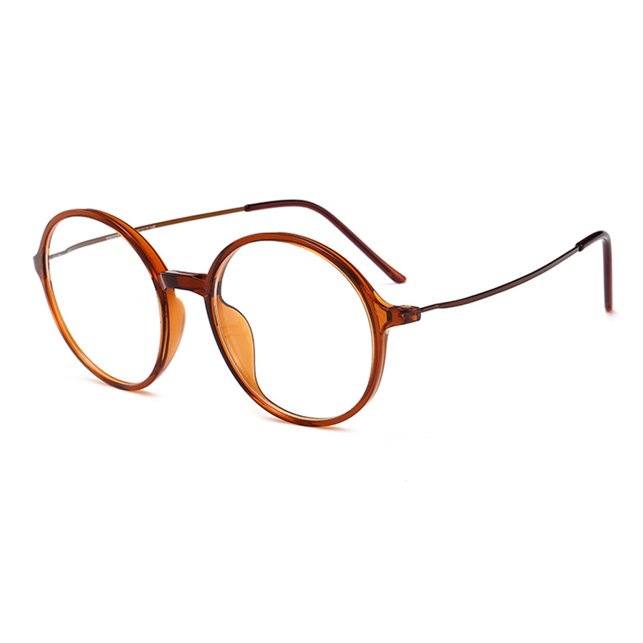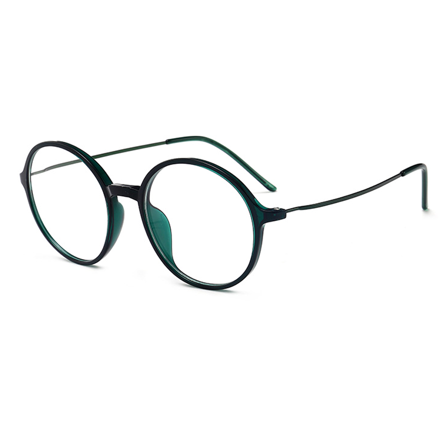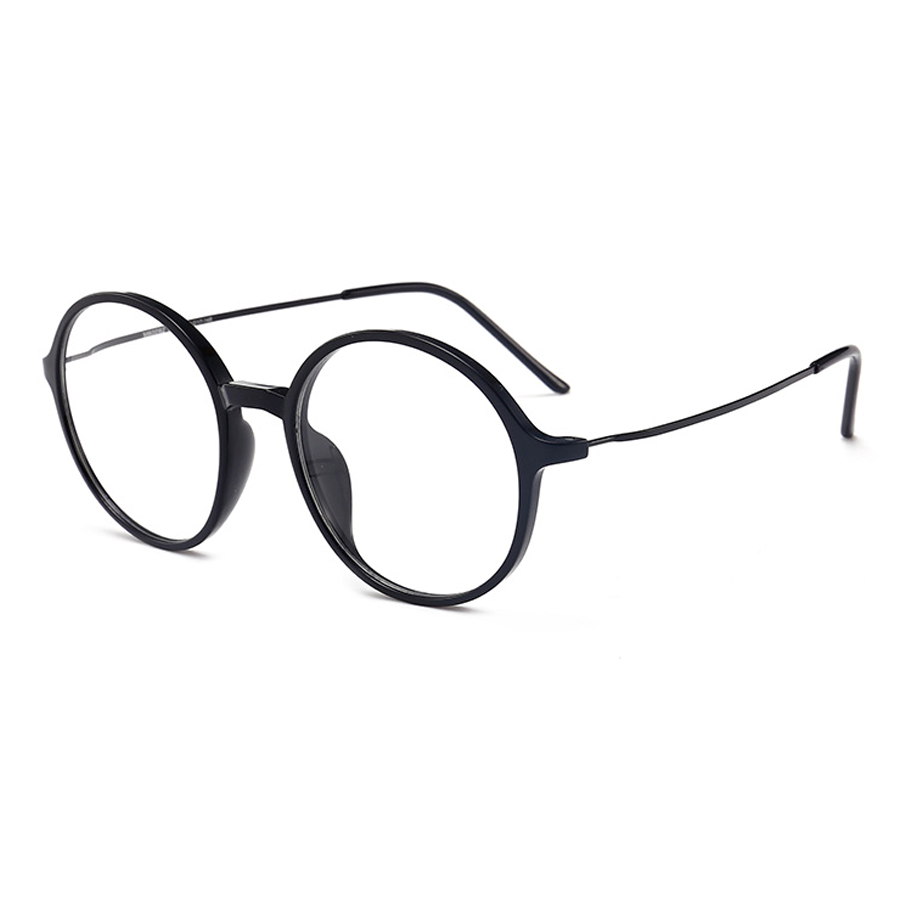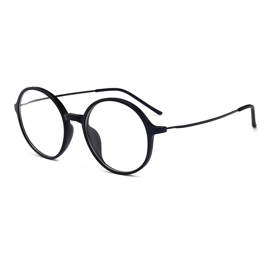The frames are primarily crafted from a lightweight and durable plastic, such as acetate or TR90, with a smooth, polished or matte finish. This material ensures the frames are sturdy yet flexible, reducing weight for long – term comfort. The thin, flexible metal temples, likely made of titanium, stainless steel, or a similar alloy, have a sleek, wire – like appearance, further minimizing weight while providing excellent durability.