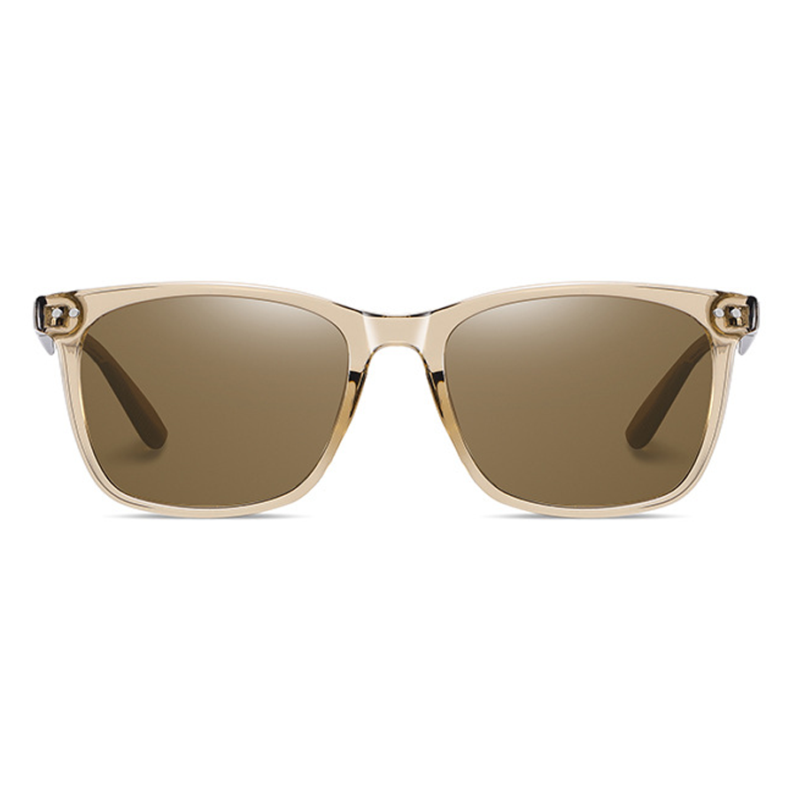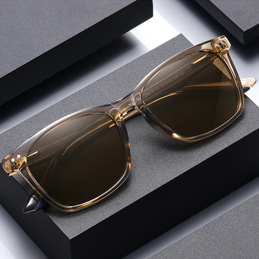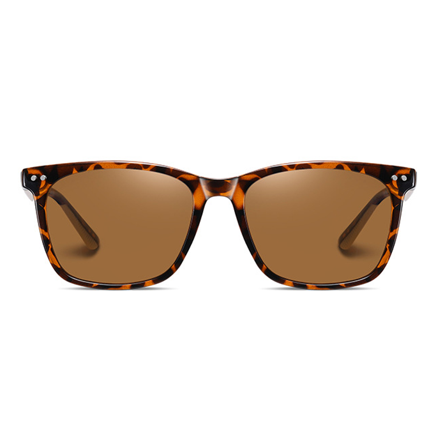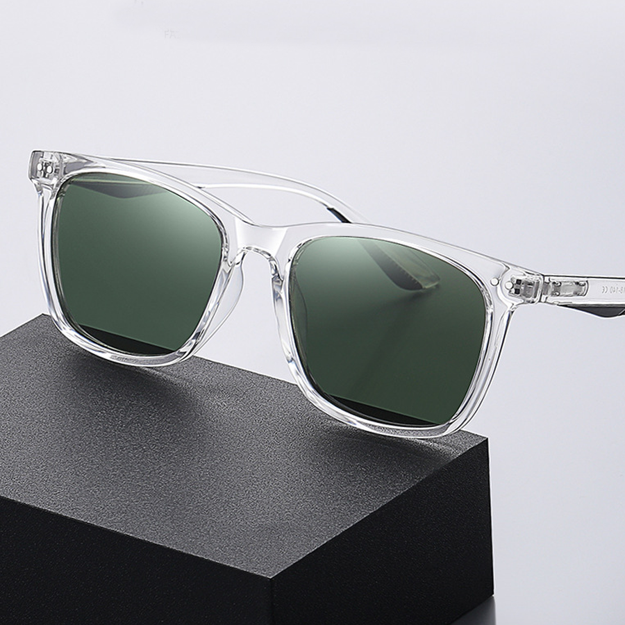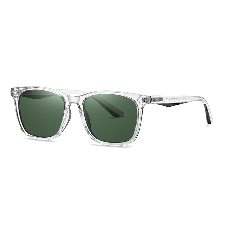 The dark-tinted polarized lenses come in various colors like gray, green, brown, and blue. They are not only effective in reducing glare from water, roads, or reflective surfaces, making them ideal for driving, outdoor sports, and other outdoor activities, but also offer protection against UVA/UVB rays. Some lenses even have a subtle reflective or mirrored finish, indicating the presence of polarization technology.