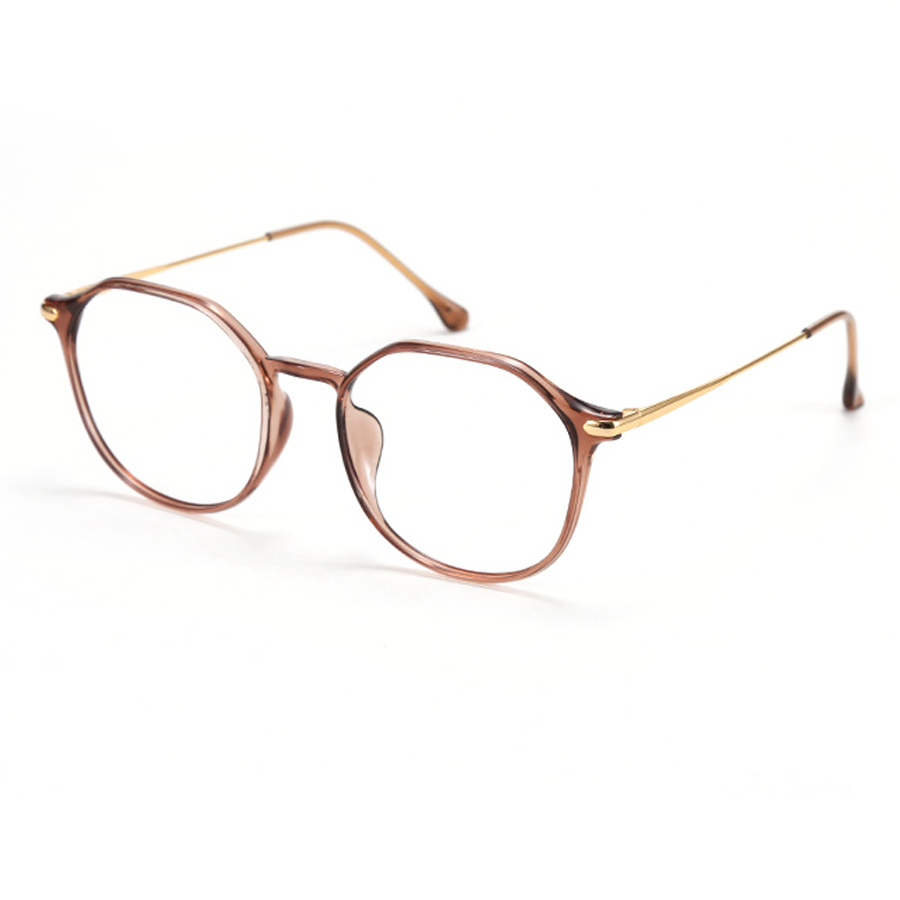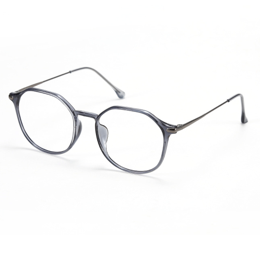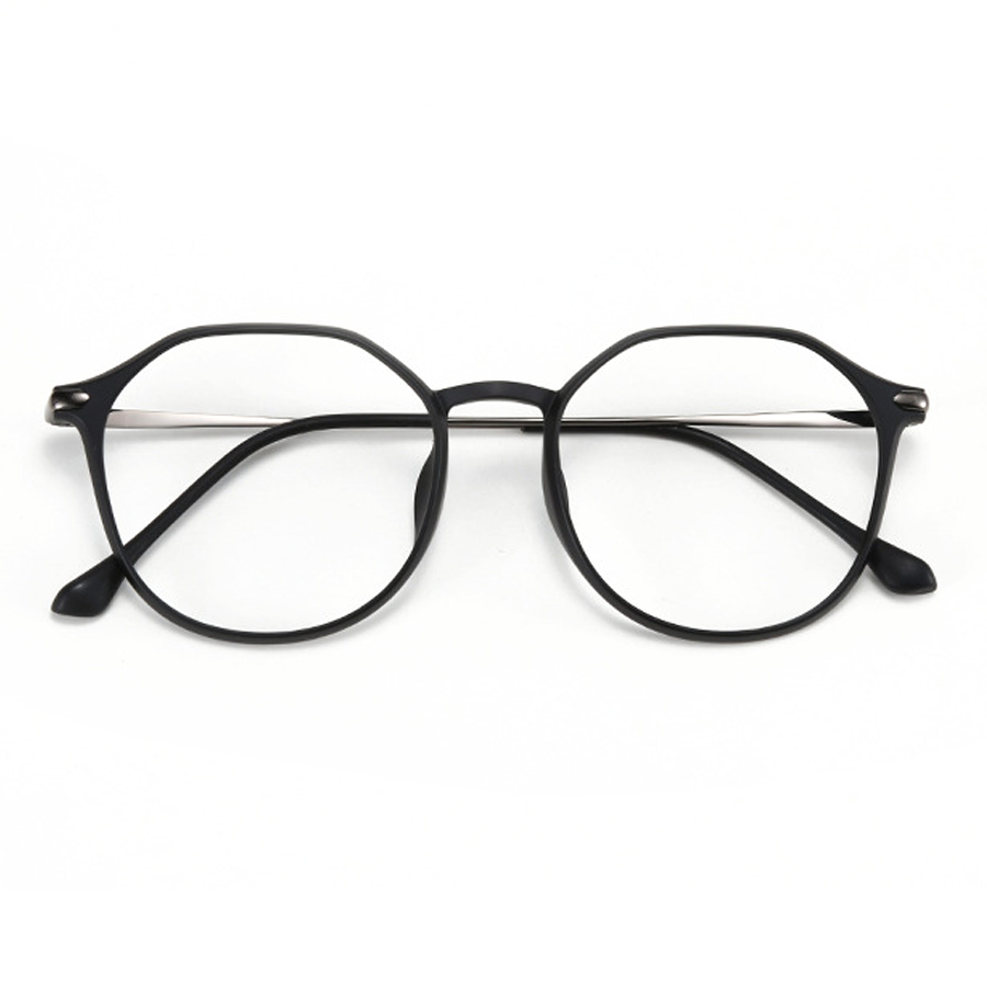 The frame of these eyeglasses is a masterpiece of material selection. The front is crafted from lightweight plastic or acetate, available in colors like Bright Black, Brown, Gray, Matte Black, and White. These materials offer flexibility, durability, and a smooth finish. The thin, sleek arms (temples) are made of metal, likely stainless steel or titanium, with a polished or brushed finish, providing strength and minimal weight. The small, soft silicone nose pads ensure comfort and stability during long – term wear.