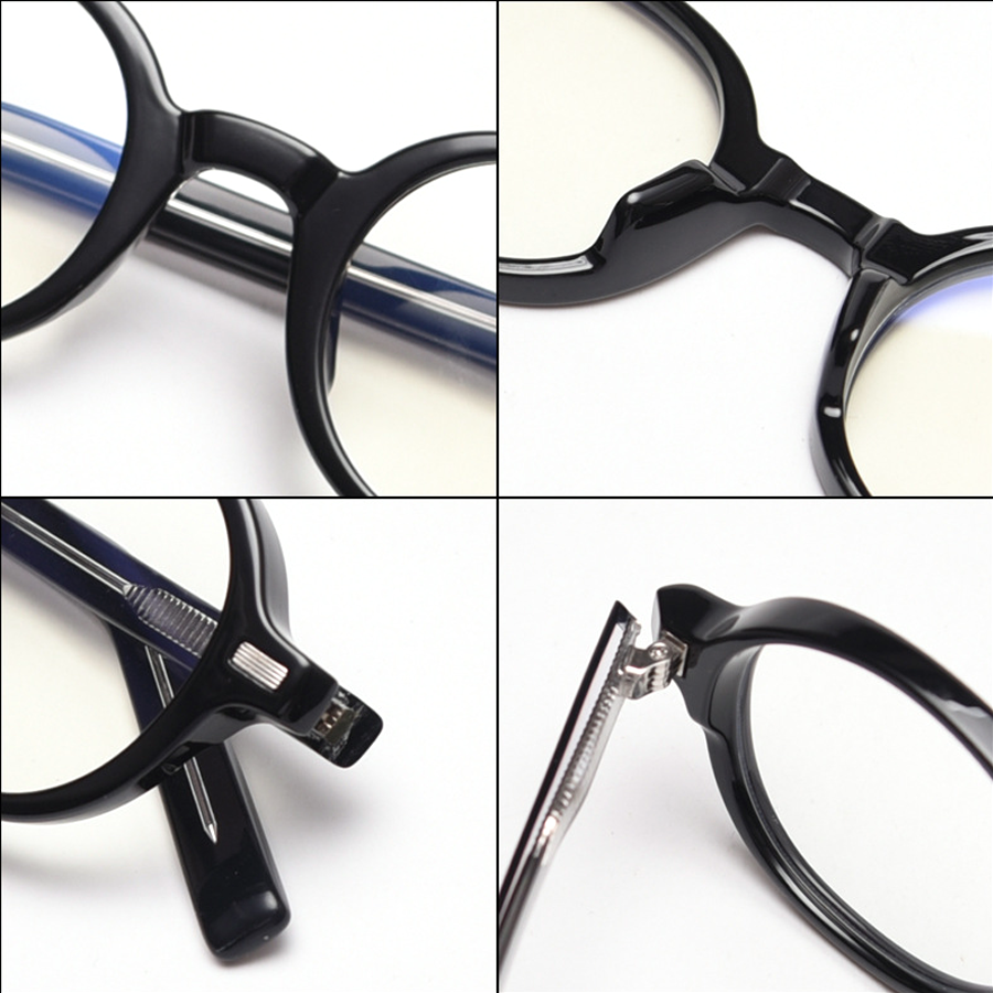 Designed with a classic round – lens aesthetic, these glasses exude a retro – vintage charm with a modern twist. The frames are crafted from lightweight, durable plastic, likely acetate or TR90, ensuring comfort during long – term wear. You have the option to choose from multiple stunning colors including Bright Black, Gray, Tortoise, and White. The Bright Black frames with metal knurling on temples are sleek and versatile, while the Tortoise color adds a retro, sophisticated touch. The Gray frames offer a subtle and contemporary look, and the White frames provide a fresh and minimalist aesthetic.