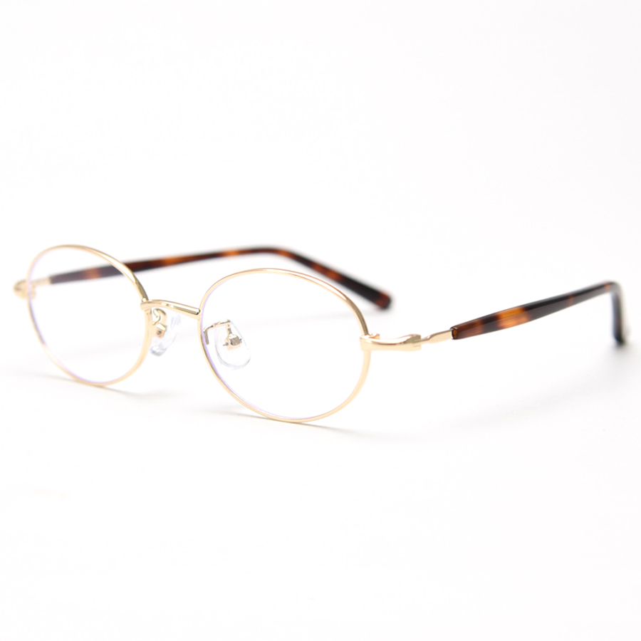 The frames feature thin, polished metal rims, likely crafted from alloy or titanium, offering a lightweight yet sturdy construction. You can choose from a range of metallic finishes including bronze, gold, matte black, and silver. The tortoiseshell – patterned acetate temples, with their dark brown base and lighter brown/black marbling, add a touch of classic elegance and versatility.