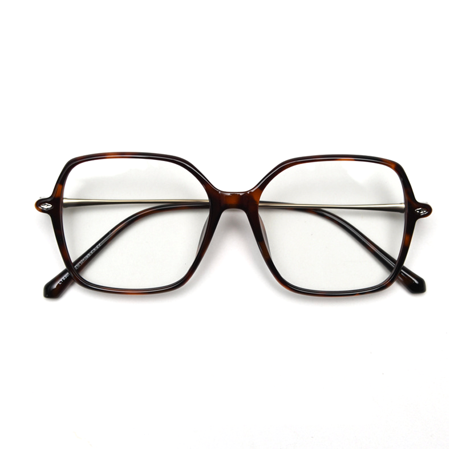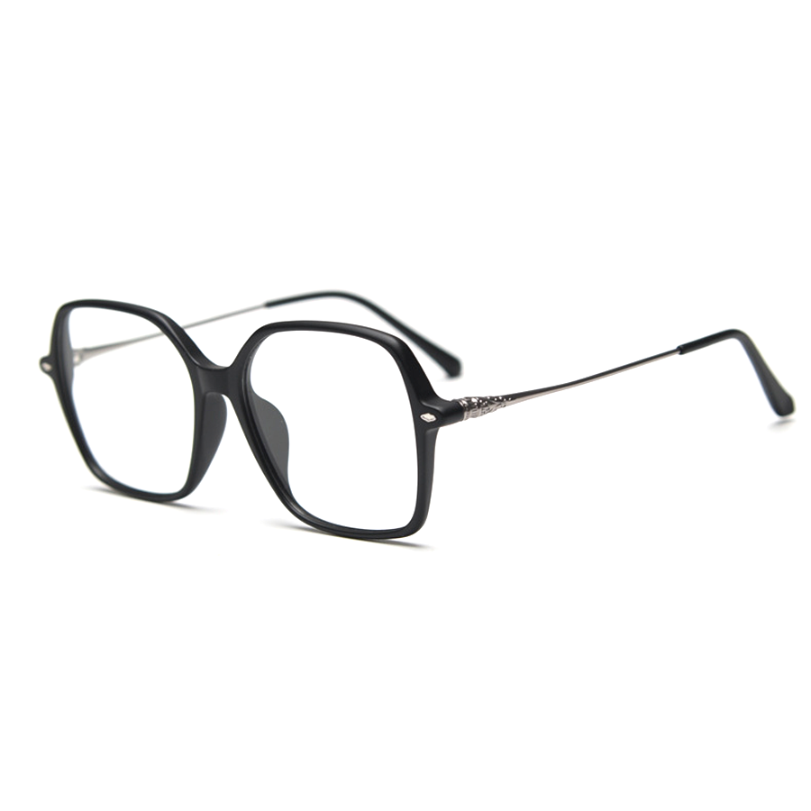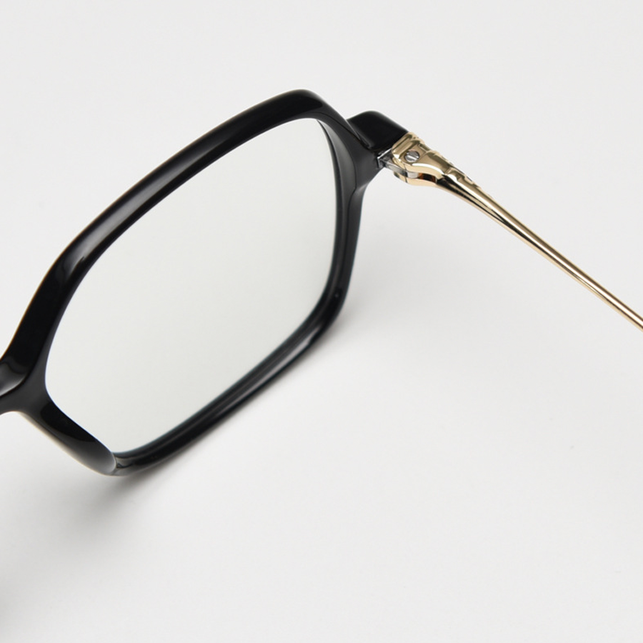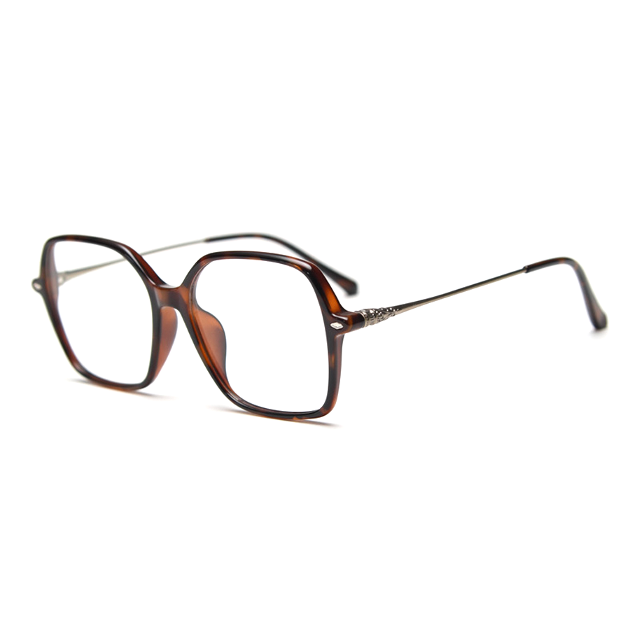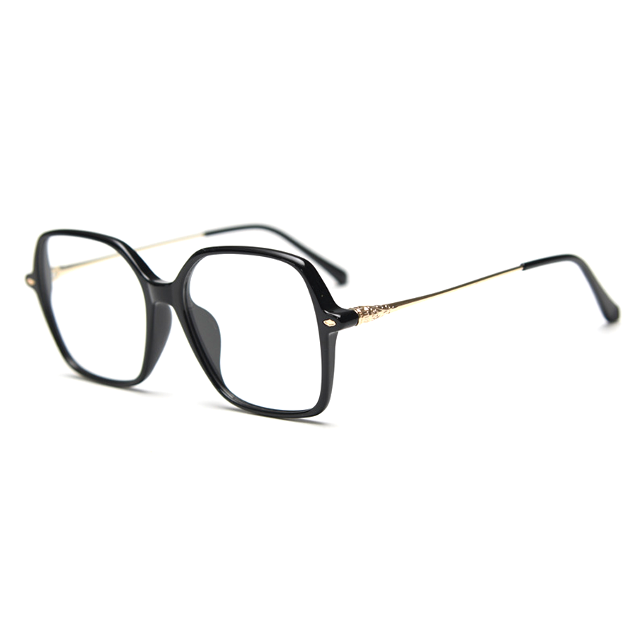 Available in a range of captivating colors including Bright Black, Light Brown, Matte Black, Tortoise, and Transparent Grey, these eyeglasses offer a sleek and versatile look. The color options include dominant solid tones like black and gray, the classic tortoiseshell pattern, and semi – transparent shades such as light brown/gray. The design features a minimalist approach with solid colors and the timeless tortoiseshell pattern, and a square shape with rounded edges for a modern yet timeless silhouette. Ornate metal hinges and ends, like the gold filigree on temple tips, add a touch of luxury and craftsmanship, along with subtle metallic accents for contrast.