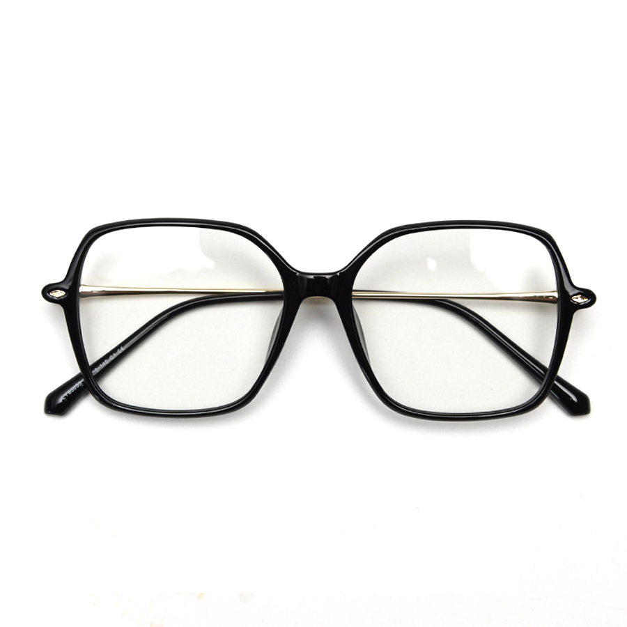 These eyeglasses come with several key features. The bold square/rounded square design makes them eye – catching. The lightweight construction, with a plastic front and thin metal temples, guarantees comfort for extended wear. It is inferred that they feature spring hinges, providing a flexible and non – pinching fit. Some lenses show minimal reflection, suggesting a possible anti – reflective coating for daily use.