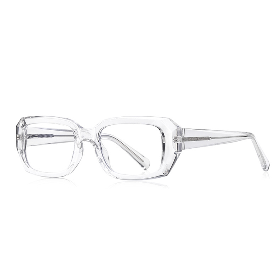 Available in a wide range of colors and designs, you can choose from solid colors like Bright Black, as well as transparent variants such as Transparent, Transparent Brown, Transparent Green, and Transparent purple. There’s also the Tortoise option, offering a unique and stylish look. The frames have a modern, geometric aesthetic with rectangular shapes and faceted (angular) corners, adding a contemporary and fashionable touch. Some frames may even have a gradient effect, enhancing their visual appeal.