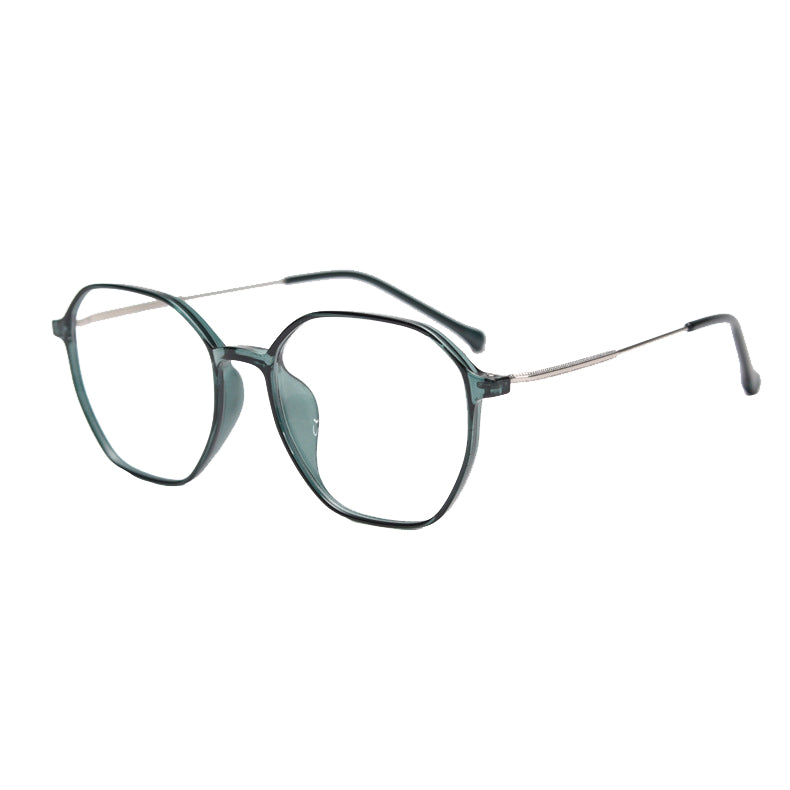 Available in a wide range of trendy, muted tones including Black, Bright Brown, Dark Green, Matte Black, Matte Brown, Matte Gray, Matte Green, Matte Purple, Matte Tortoise, Matte White, Pink, and Transparent Gray, you can choose the color that best suits your style. The geometric, hexagonal/octagonal lens contours give a modern and versatile look, while design elements like the double bridge/top bar add a vintage – modern aesthetic. The minimalist design with thin plastic rims, sleek metal accents, and smooth, rounded arm tips is truly eye – catching.