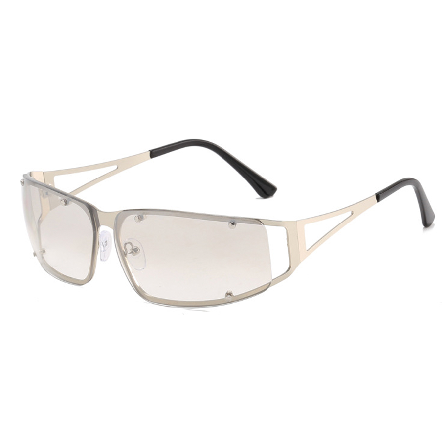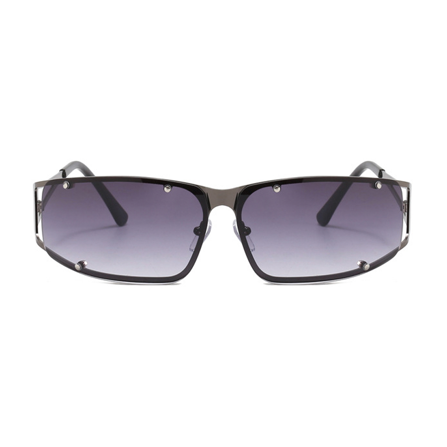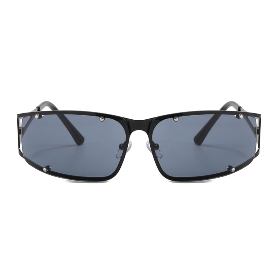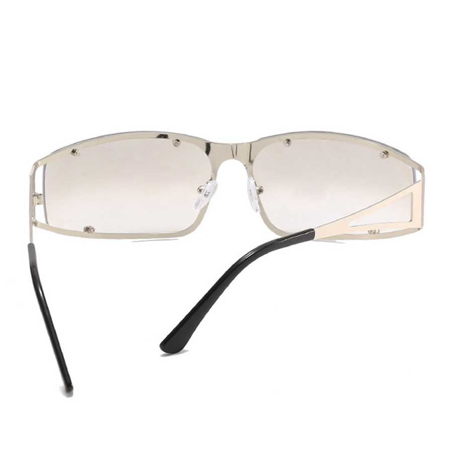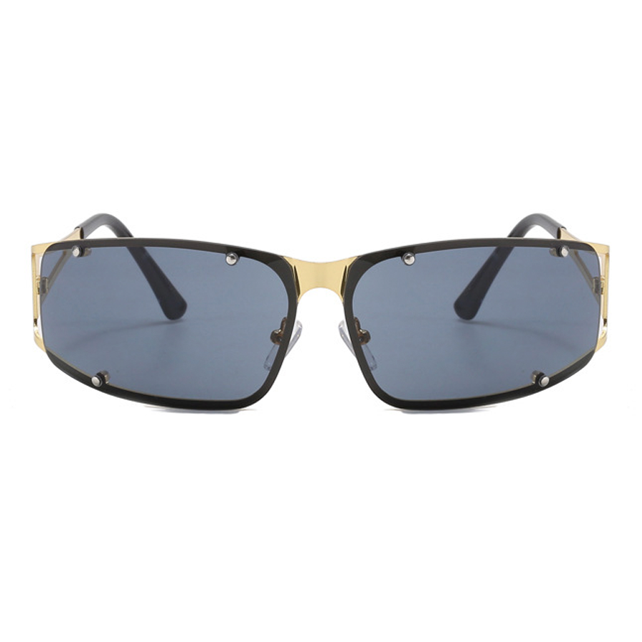The frame of these sunglasses is crafted from a metal alloy, likely stainless steel, offering finishes in gold, silver, black, and gunmetal. This gives you multiple color options to match your personal style. The temples combine metallic frame sections with black plastic/rubber tips, ensuring comfort, grip, and an anti – slip fit behind the ears. The cut – out triangular sections on the temples are a distinctive design element, not only adding a unique style but also reducing weight.