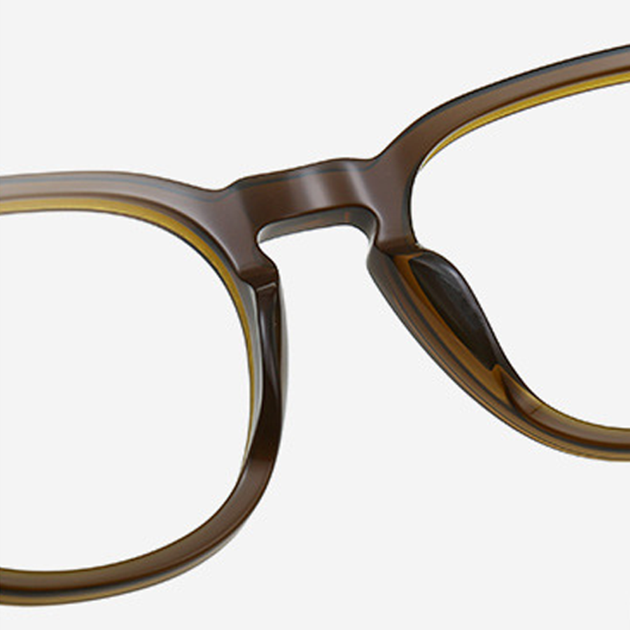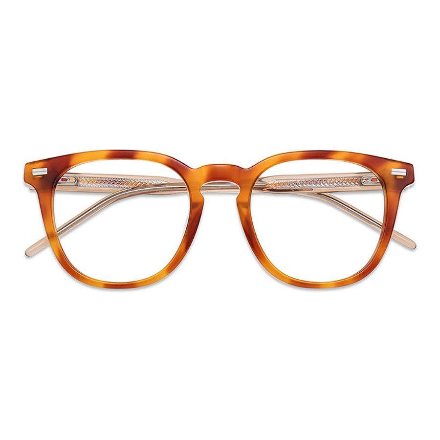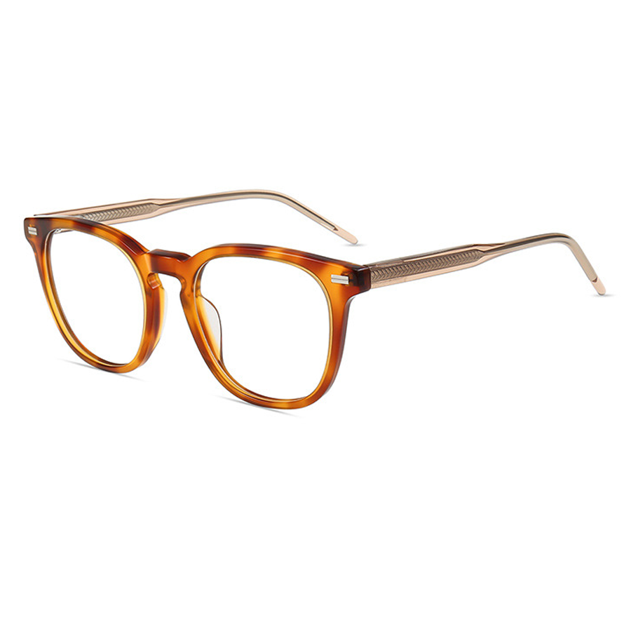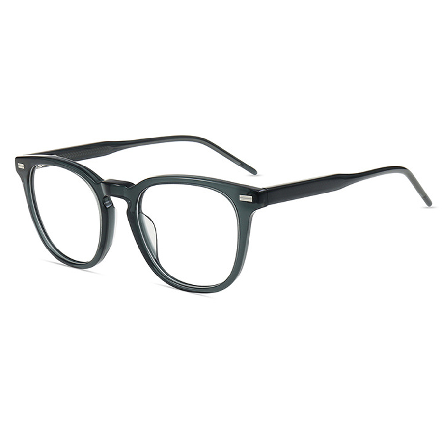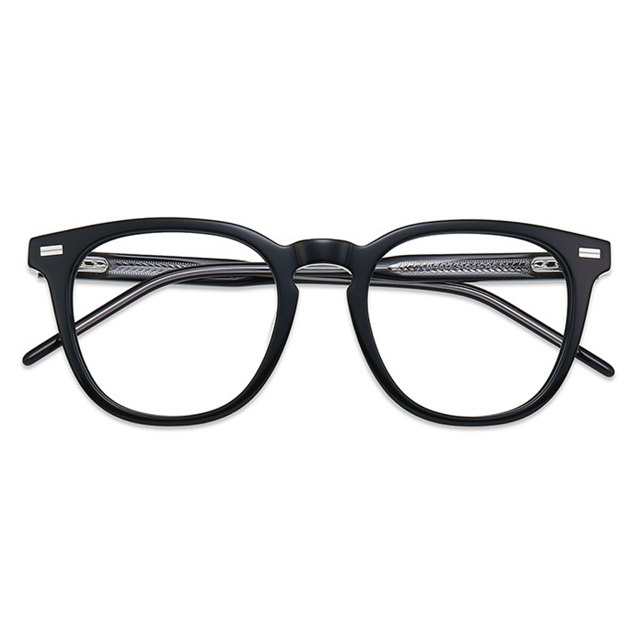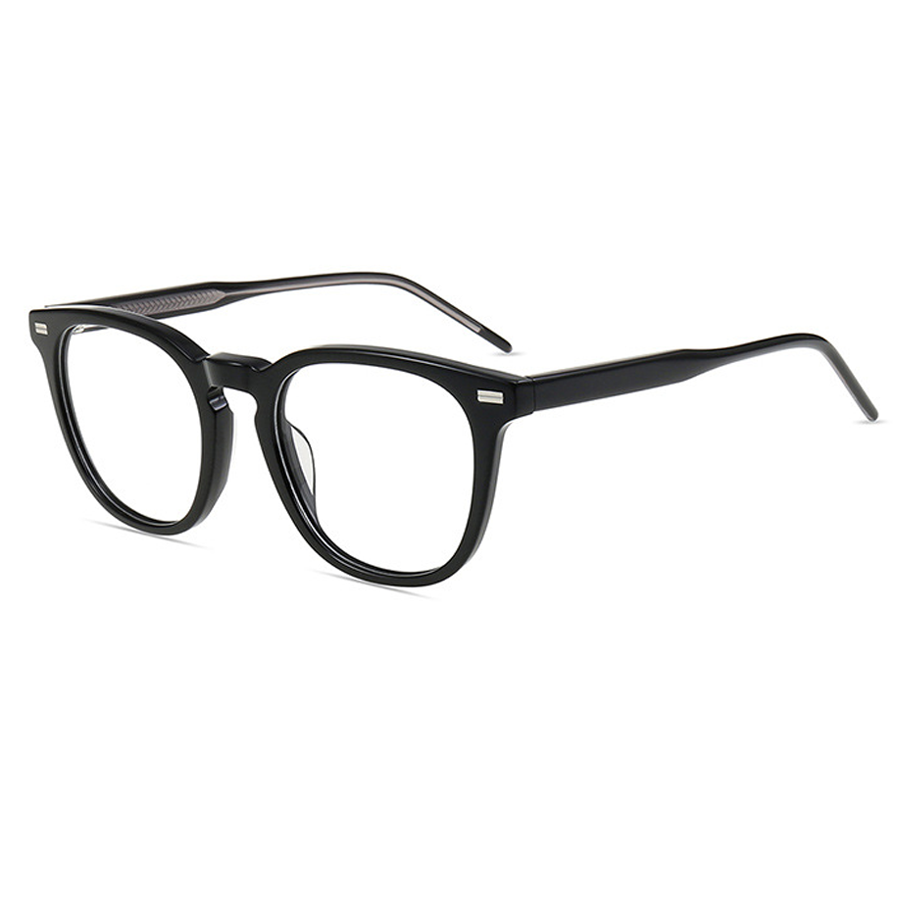 Available in a variety of colors, including bright black, dark blue, dark brown, and tortoise, you can choose the one that best suits your style. The classic square – to – round hybrid shape, with a rounded bottom and angular top, along with the medium lens size, is suitable for most face shapes. The small metallic rectangular strips on the top front corners of the frame add a minimalist design touch, while the textured temple arms enhance grip and comfort.