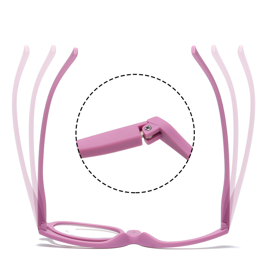 The frames are crafted from a lightweight, flexible plastic, likely TR90 or a similar matte – finished thermoplastic. This material not only provides durability but also offers a non – slip, smooth finish, reducing glare and enhancing comfort during extended wear. The lenses are made of clear, optical – grade plastic or glass, securely attached to the frame, and are explicitly marked with the magnification power. The hinges are metal with visible screws, ensuring sturdy and adjustable arm connections.