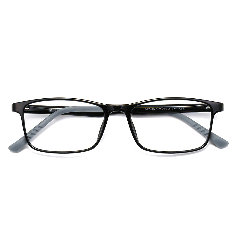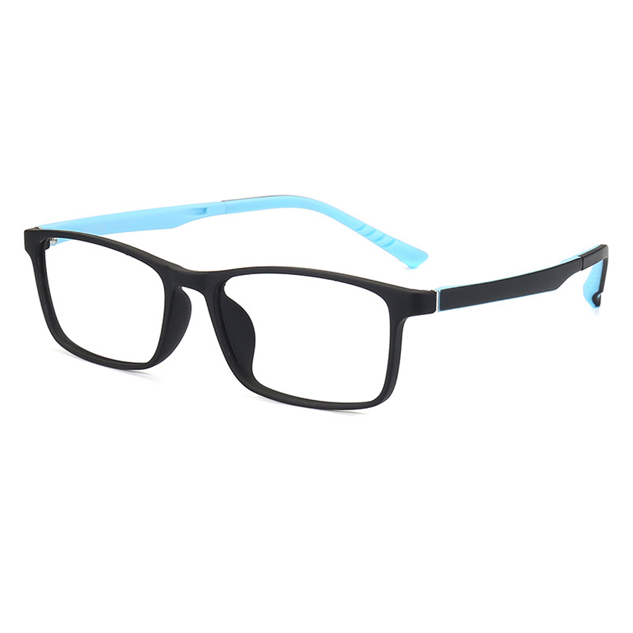 The front frame of these eyeglasses is crafted from a lightweight, matte – finish plastic, likely TR90, acetate, or polycarbonate, which is not only durable but also scratch – resistant. The temples are a combination of plastic for the main body and possibly metal for the hinges, offering both sturdiness and flexibility. They feature a soft, textured grip area to prevent slipping and a small, curved end piece for ear comfort. The nose pads are soft, curved, and black, integrated into the bridge to distribute pressure and ensure extended – wear comfort.