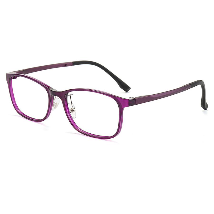 Available in a variety of colors including Blue, Bright Black, Matte Black, Purple, and Red, with some options being solid and others translucent. The frames also come with metallic silver accents, and some feature dual – tone temples for a trendy look. The rectangular/rounded – rectangular frames have clean, minimalist lines, smooth edges, and polished finishes, adding a modern, sleek aesthetic.