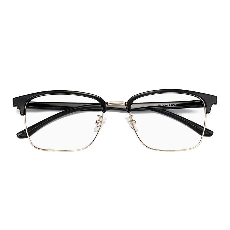 The top brow bar and temple arms are crafted from durable, lightweight black plastic (or acetate), ensuring long – lasting structural support. The lower portion of the frame surrounding the lenses is made of metal, available in sleek, polished silver, gold, or black trims. The temples are curved with a smooth finish, offering a comfortable fit.