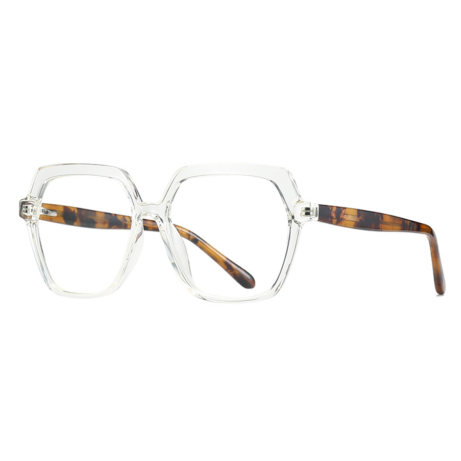 These eyeglasses sport angular, hexagonal/square frames with thick, bold rims and clean, modern lines. The retro – inspired oversized proportions are updated for contemporary fashion. With an estimated lens width of ~50–55mm, they create a dramatic silhouette on the face.