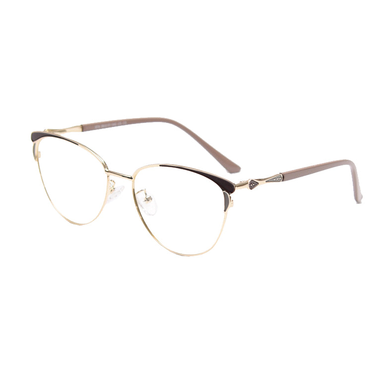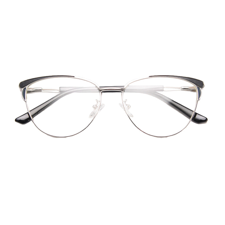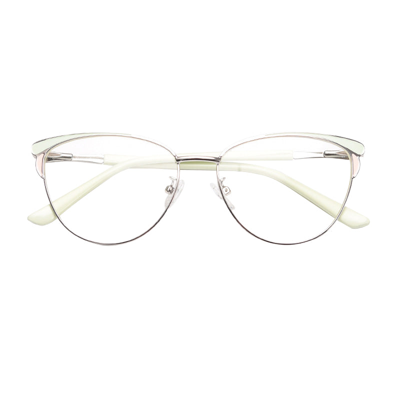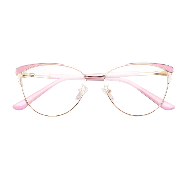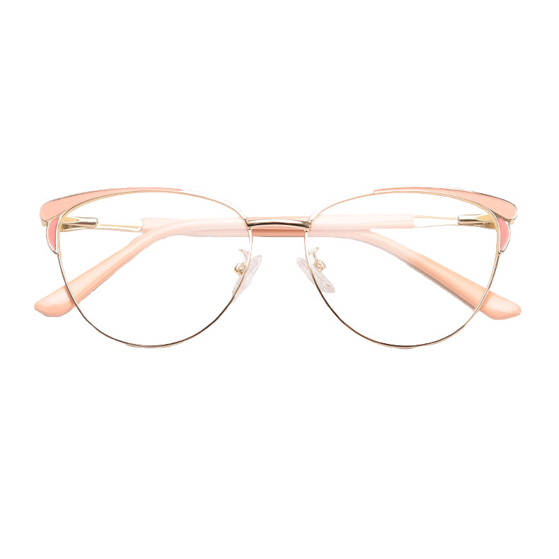 The frames feature a trendy cat – eye shape, a classic yet contemporary style with a curved brow bar and upward outer corners. This shape not only adds a touch of vintage charm but also gives a modern, feminine aesthetic. The primary frame is made of a thin, polished metal, likely an alloy or titanium, which offers durability while being lightweight. This reduces the strain on your nose and ears during extended wear.