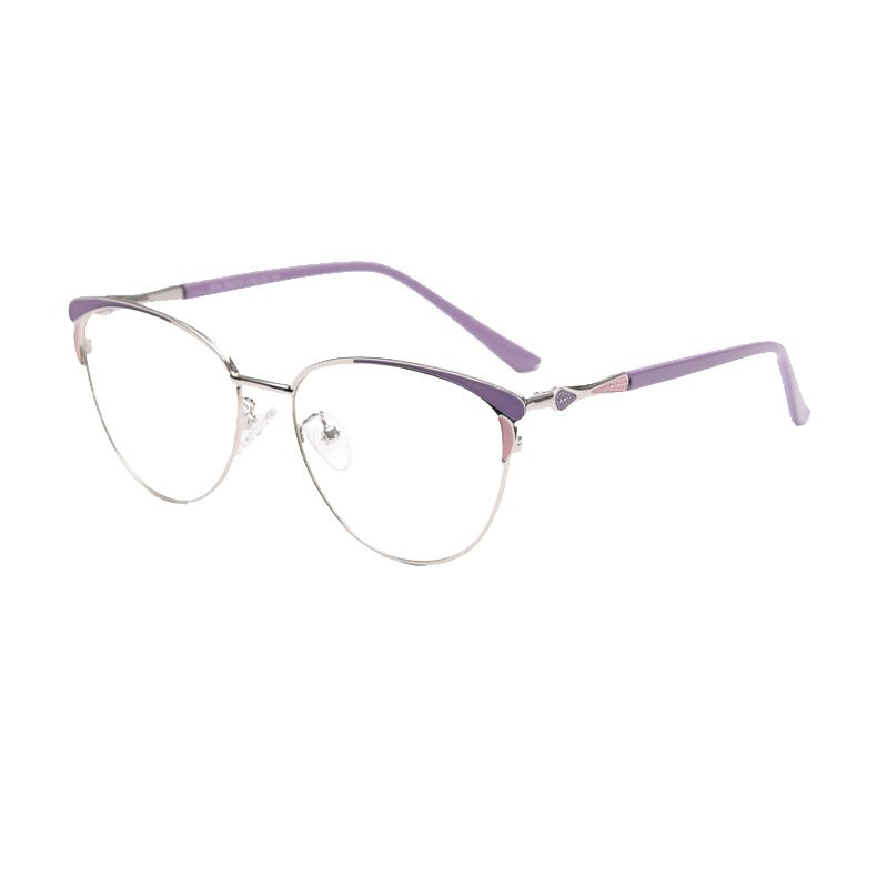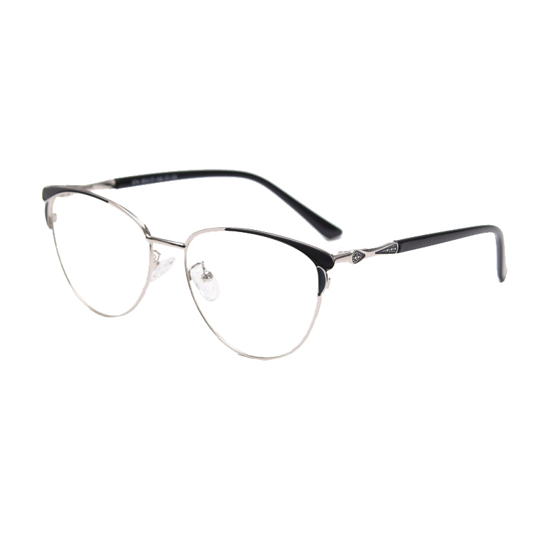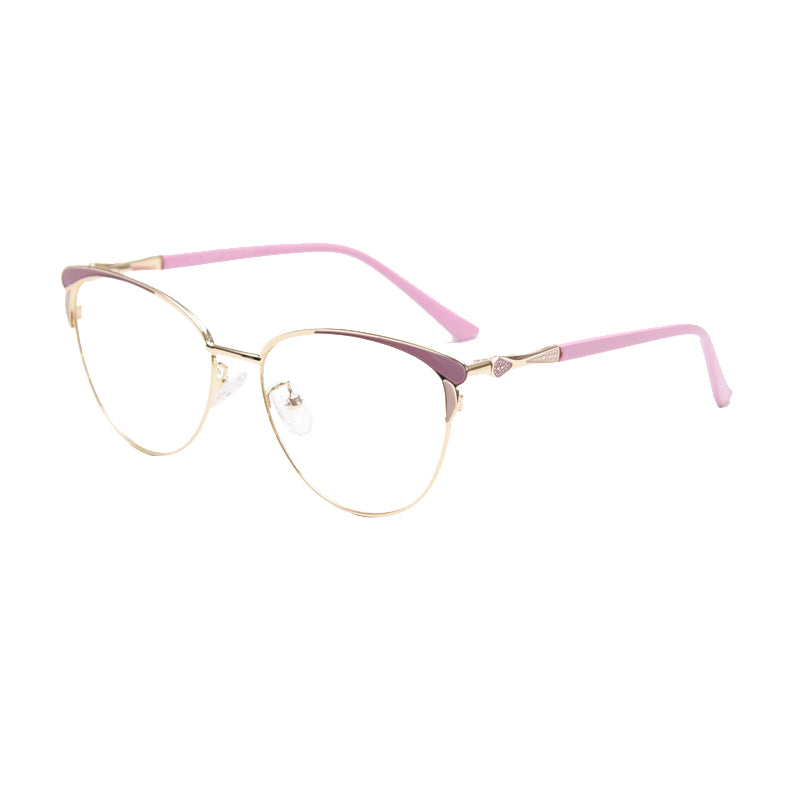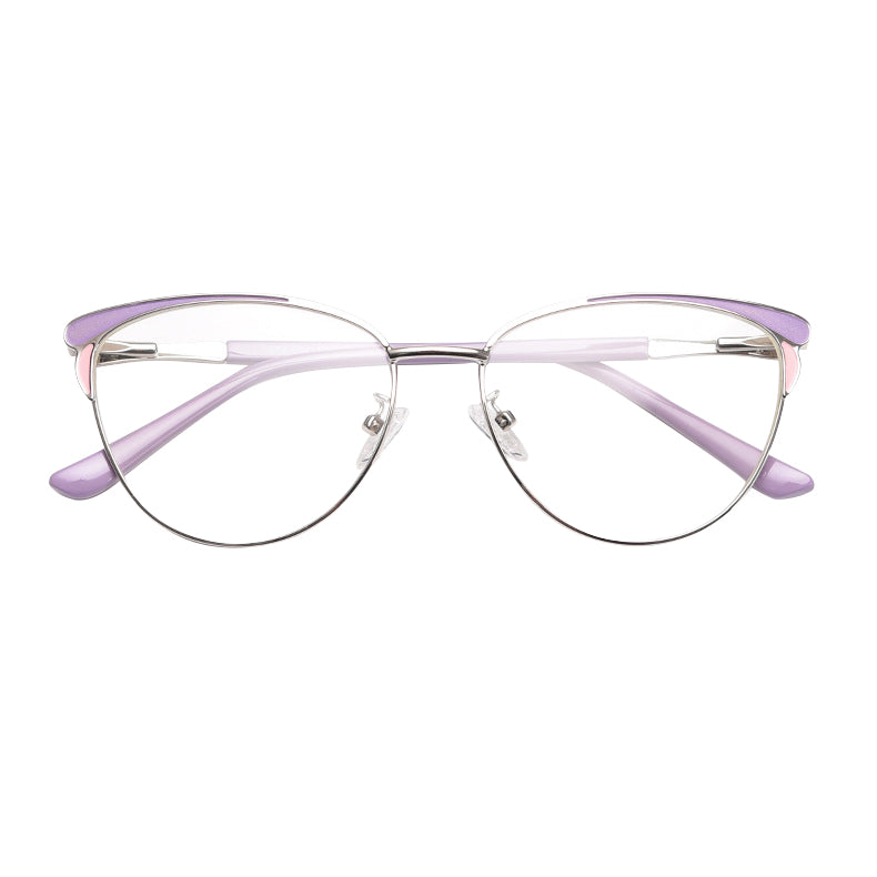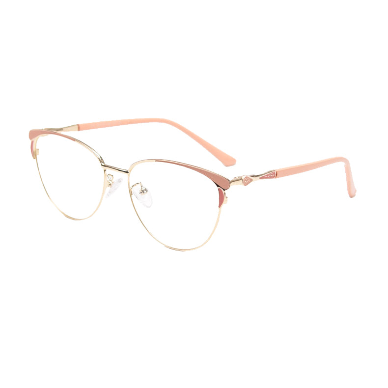 The frames feature a trendy cat – eye shape, a classic yet contemporary style with a curved brow bar and upward outer corners. This shape not only adds a touch of vintage charm but also gives a modern, feminine aesthetic. The primary frame is made of a thin, polished metal, likely an alloy or titanium, which offers durability while being lightweight. This reduces the strain on your nose and ears during extended wear.