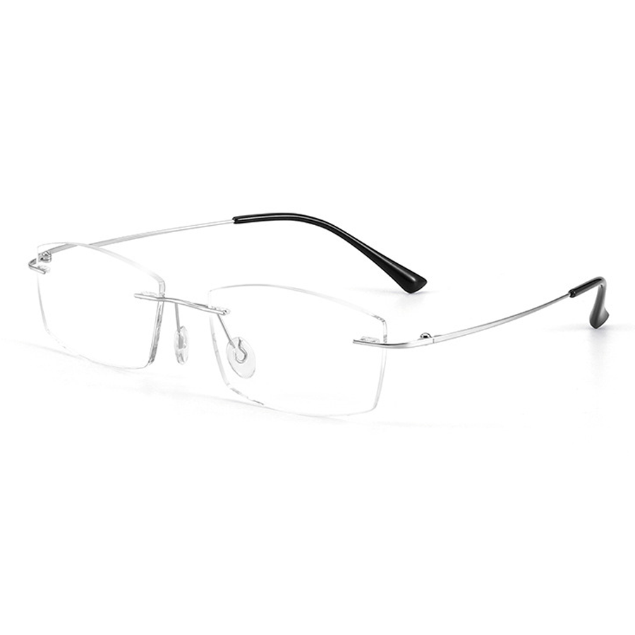 Present Rectangle Rimless Reading Eyeglasses in Silver with Multiple RX Options and Blue Light Filtering