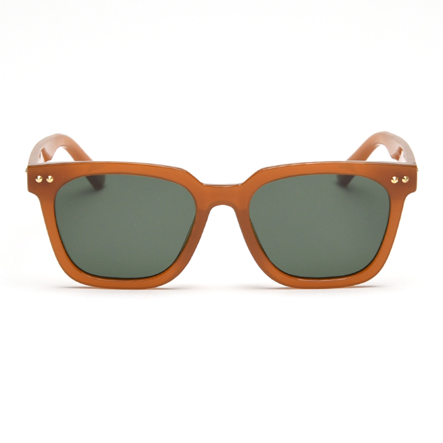 The frame of these sunglasses is primarily crafted from a lightweight and durable translucent or semi – translucent plastic/acetate material. It comes in a variety of stylish colors including black, brown, and light brown, with a matte or glossy finish that gives a modern and fashionable look. The square – shaped frames have slightly rounded corners, offering a modern retro style that flatters most face shapes.