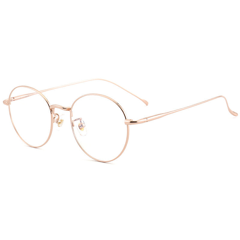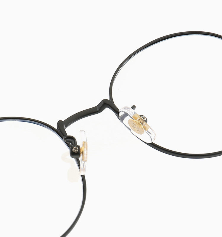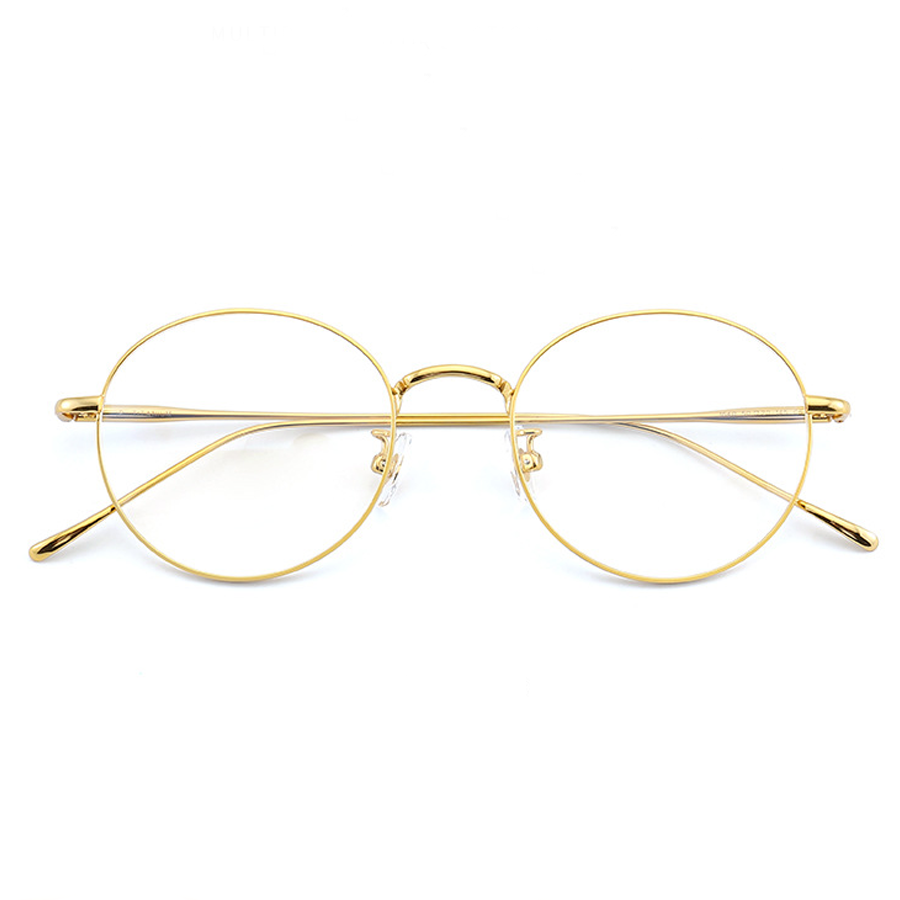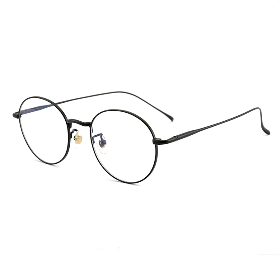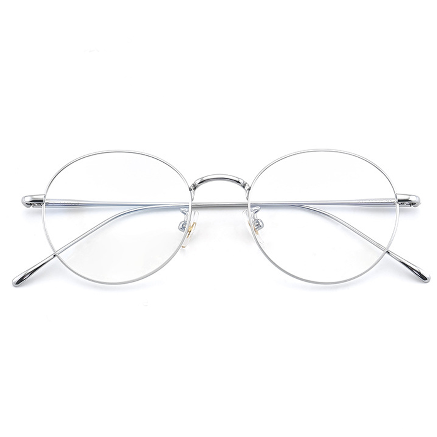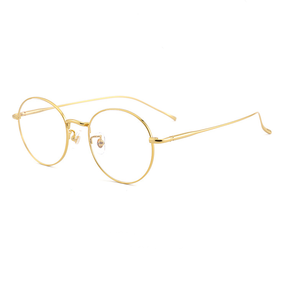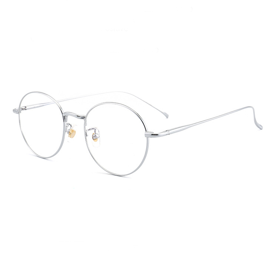 The primary frame material is a thin, lightweight metal, likely titanium, which is evident from the “TITANIUM” text on the temple arms. Titanium offers exceptional durability, lightness, and a polished finish. The nose pads are made of clear plastic, providing comfort and minimal obstruction, with metal or plastic hinges for adjustability. The temples are thin metal with either smooth, polished, or matte finishes, ensuring flexibility and long – term comfort.