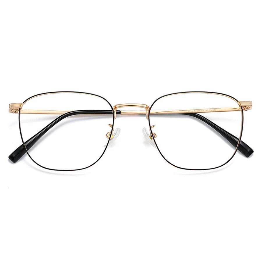 With a slightly rounded square (geometric square) shape and soft, curved corners, these eyeglasses have a modern and versatile design. Some models come with a double bridge, a thin metallic piece connecting the two lenses, giving a refined, vintage – inspired look. The temple arms of gold/silver models have grooved or ribbed sections near the hinges, adding both design detail and grip.