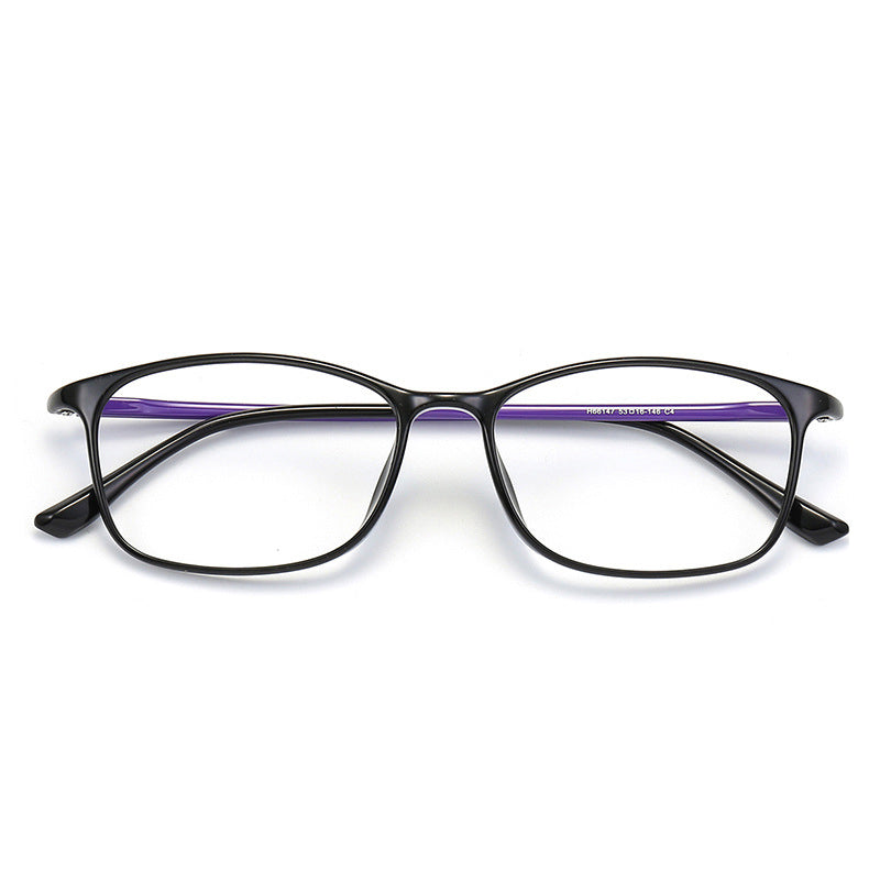 The frame front is crafted from either TR90 (a lightweight, durable plastic) or acetate, boasting a smooth, glossy or matte finish and flexibility. The temples are a blend of flexible plastic for comfort and possibly metal or coated plastic for sturdiness. The black portions are made of a flexible, non – slip material, while the colored accents are in a glossy or matte plastic.