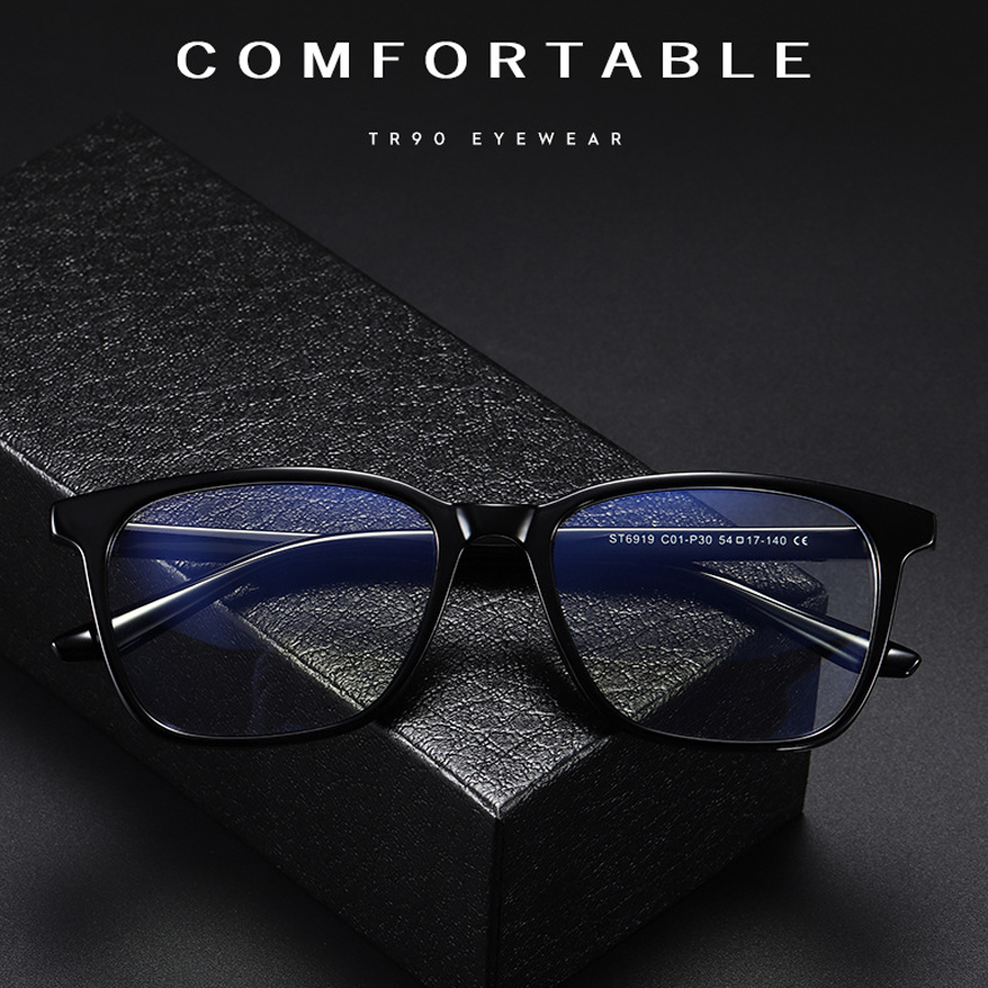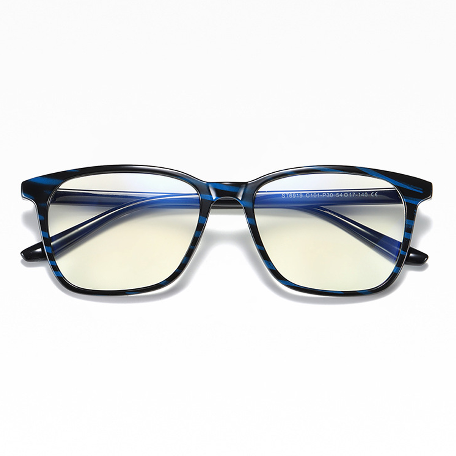 Available in a variety of colors including Black Blue, Bright Black, Matte Black, Tortoise, and Transparent, as well as patterns like tortoiseshell (brown/orange marbled) and blue – striped (blue and black), there’s an option to suit every style preference. The frame shapes are square/rectangular with sleek, modern silhouettes featuring flat – top and slightly angled temples for a polished look. Some frames also have subtle branding or model numbers, like “ST6919”, printed on the lenses.