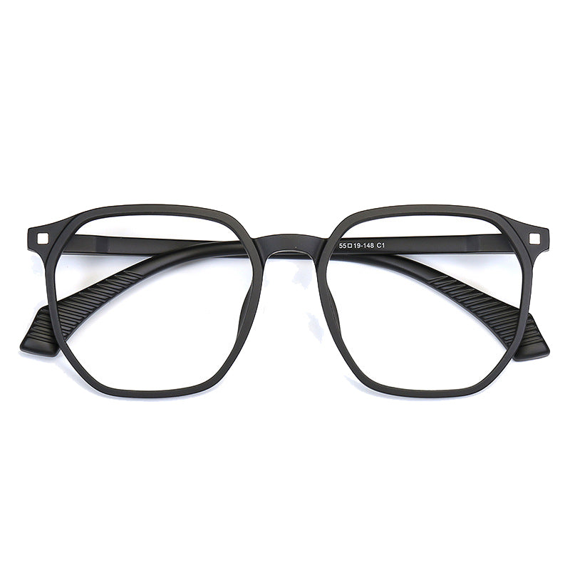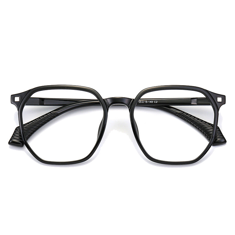 The oversized square/rounded – square lenses are a trendy and modern shape that flatters most face types. The small square metal accents on the temples add subtle sophistication. With a lens width of ~55mm, a bridge width of ~19mm, and a temple length of ~148mm, these frames are designed for a comfortable fit for most adults.